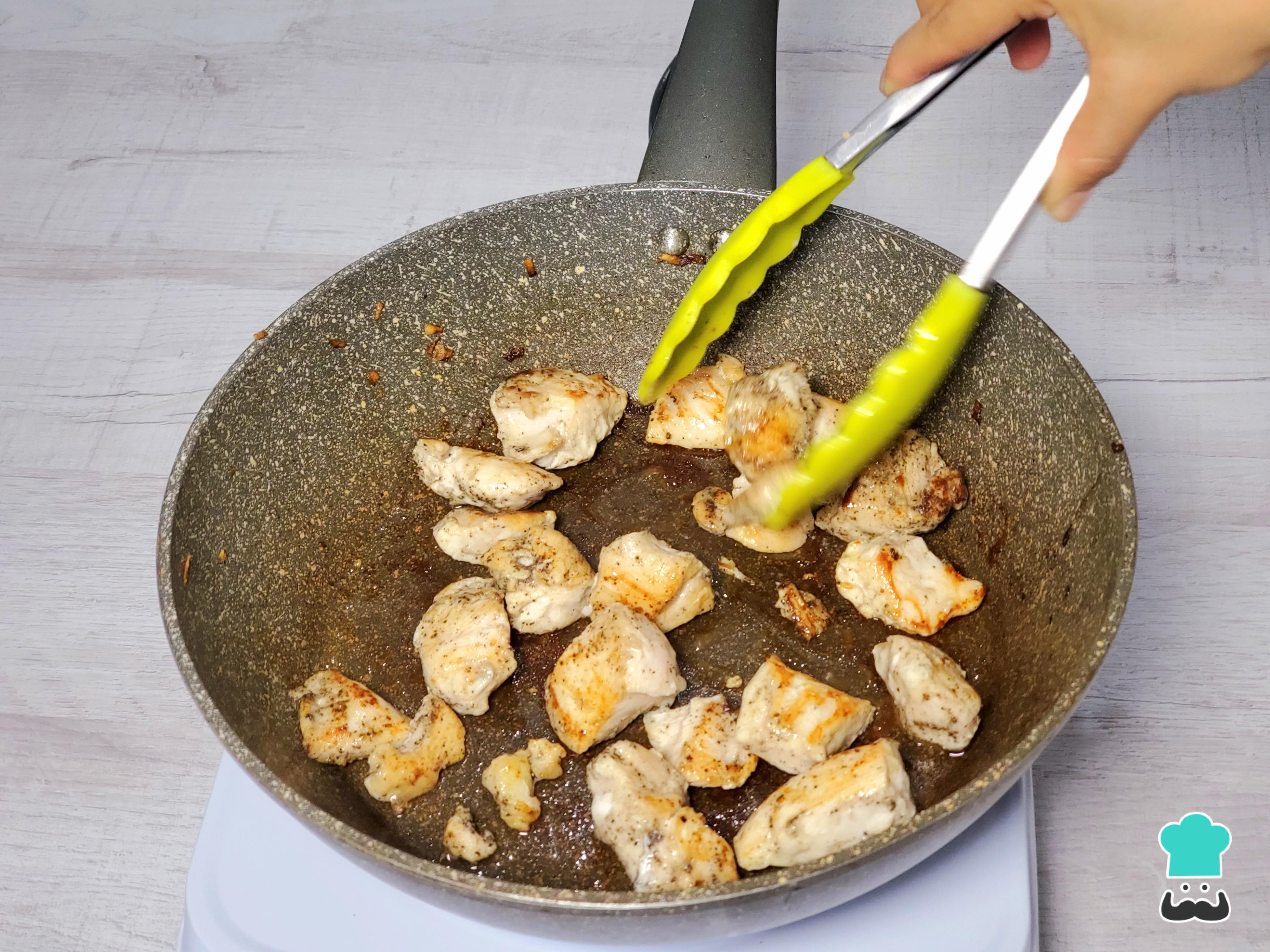 - Corta el pollo en trozos uniformes para cocción pareja.