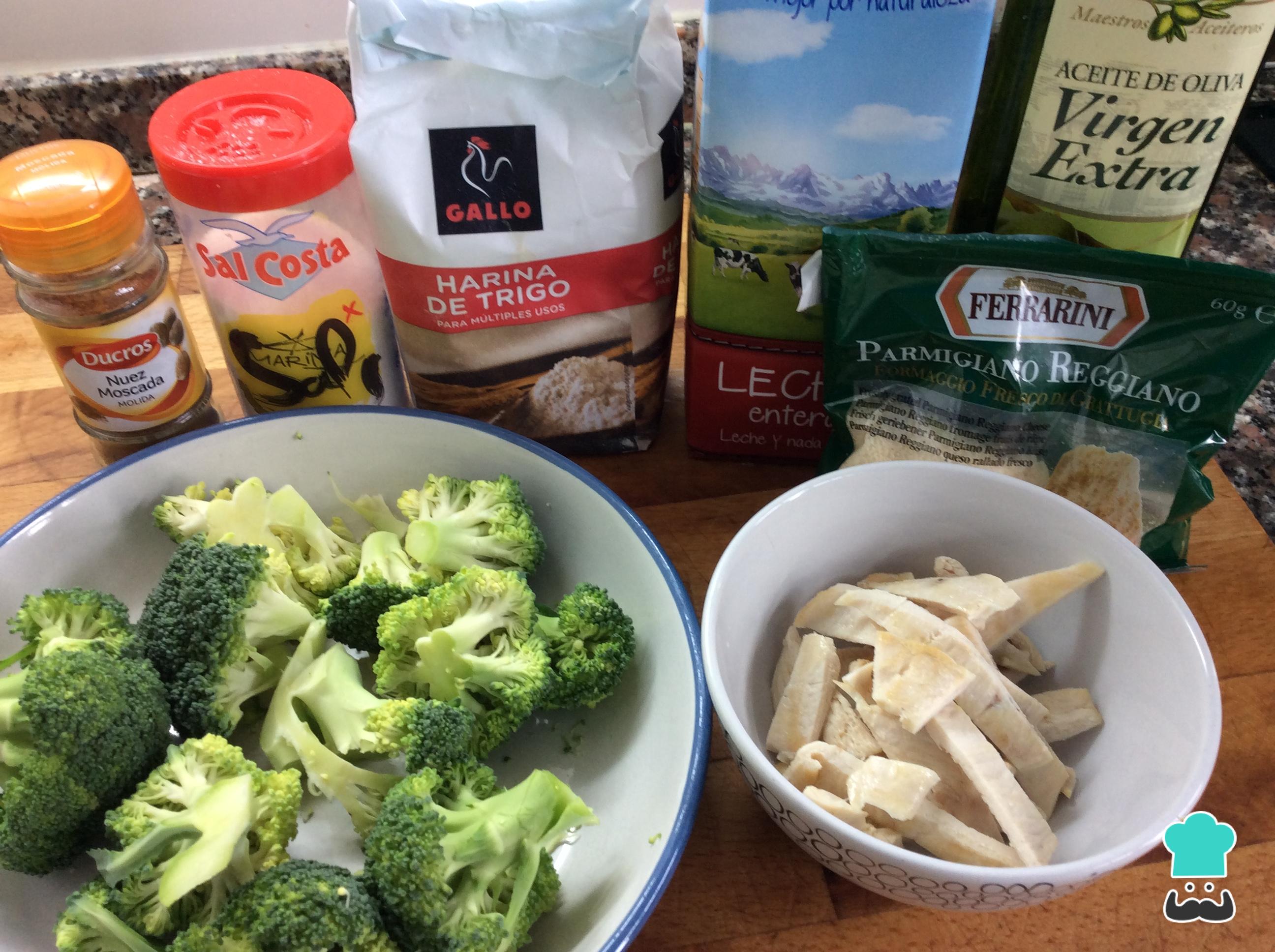 Aquí tenemos los ingredientes para el pollo cremoso con brócoli, que seguro que te quedará sabroso siguiendo las instrucciones de RecetasGratis.net. La pechuga de pollo ya la tenemos cocinada a la plancha y la cortamos en tiras. Brócoli, algo de queso y los ingredientes para hacer una bechamel es lo que necesitamos.