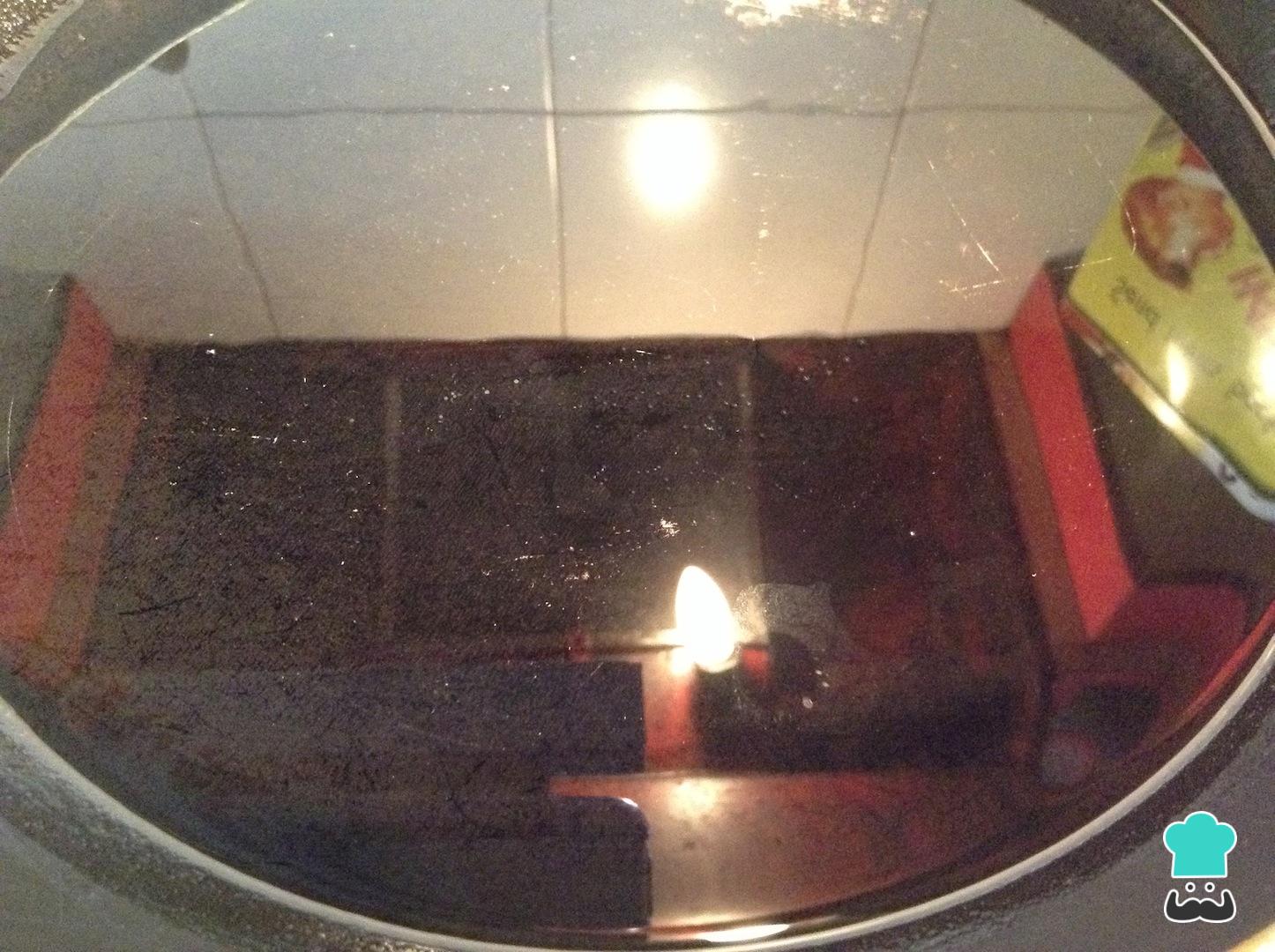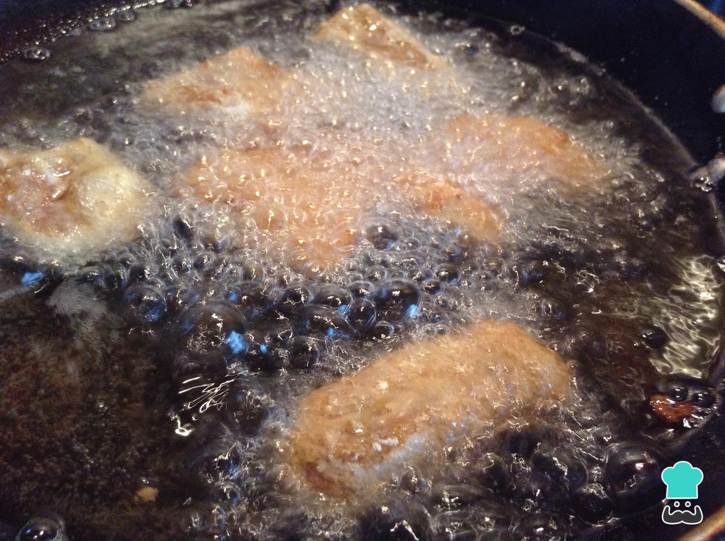 Lleva suficiente aceite de girasol a una sartén para que podamos freír la preparación anterior.
