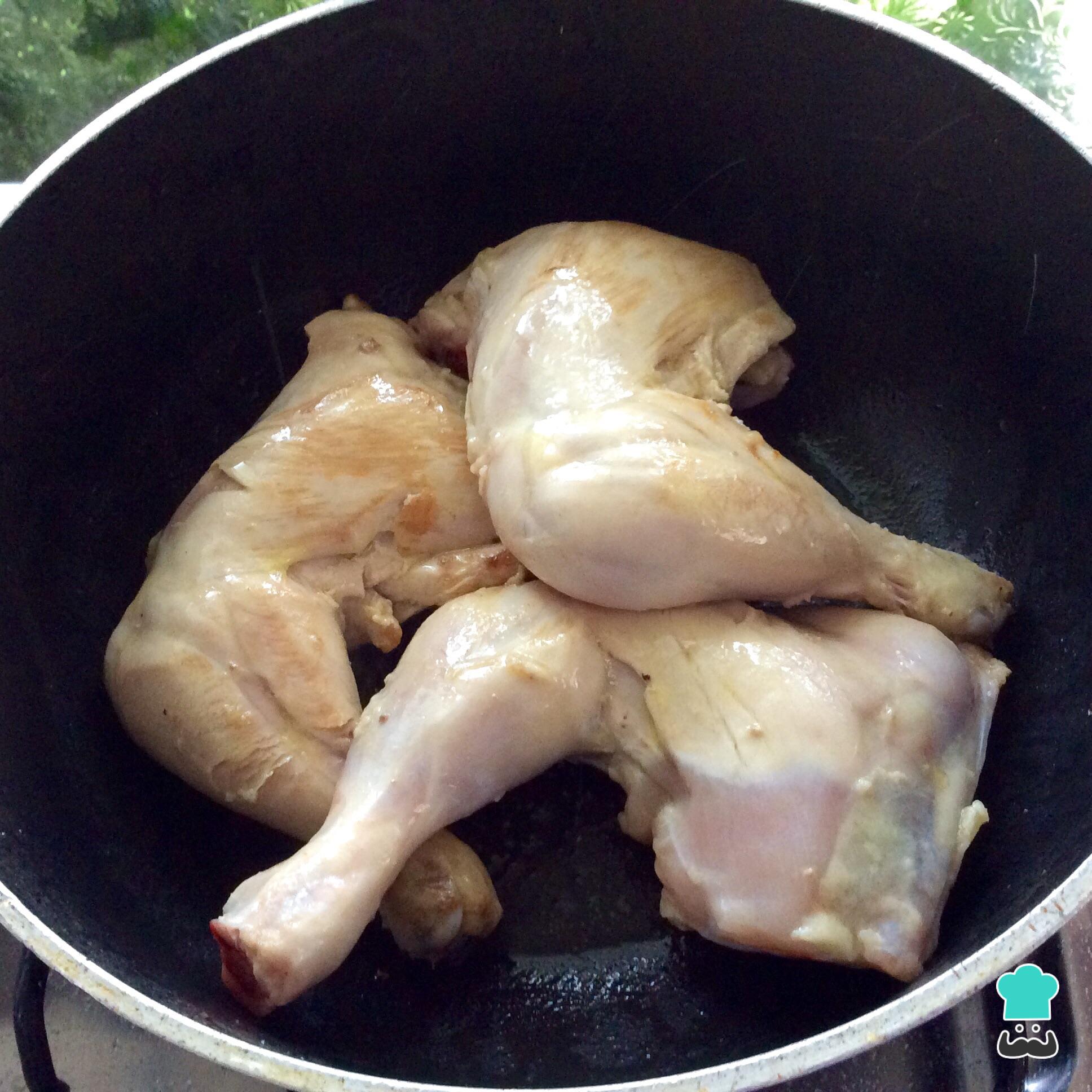 En una sartén con un poco de aceite y a fuego alto dora las presas de pollo. Cuando estén bien doradas retíralas de la olla y resérvalas.