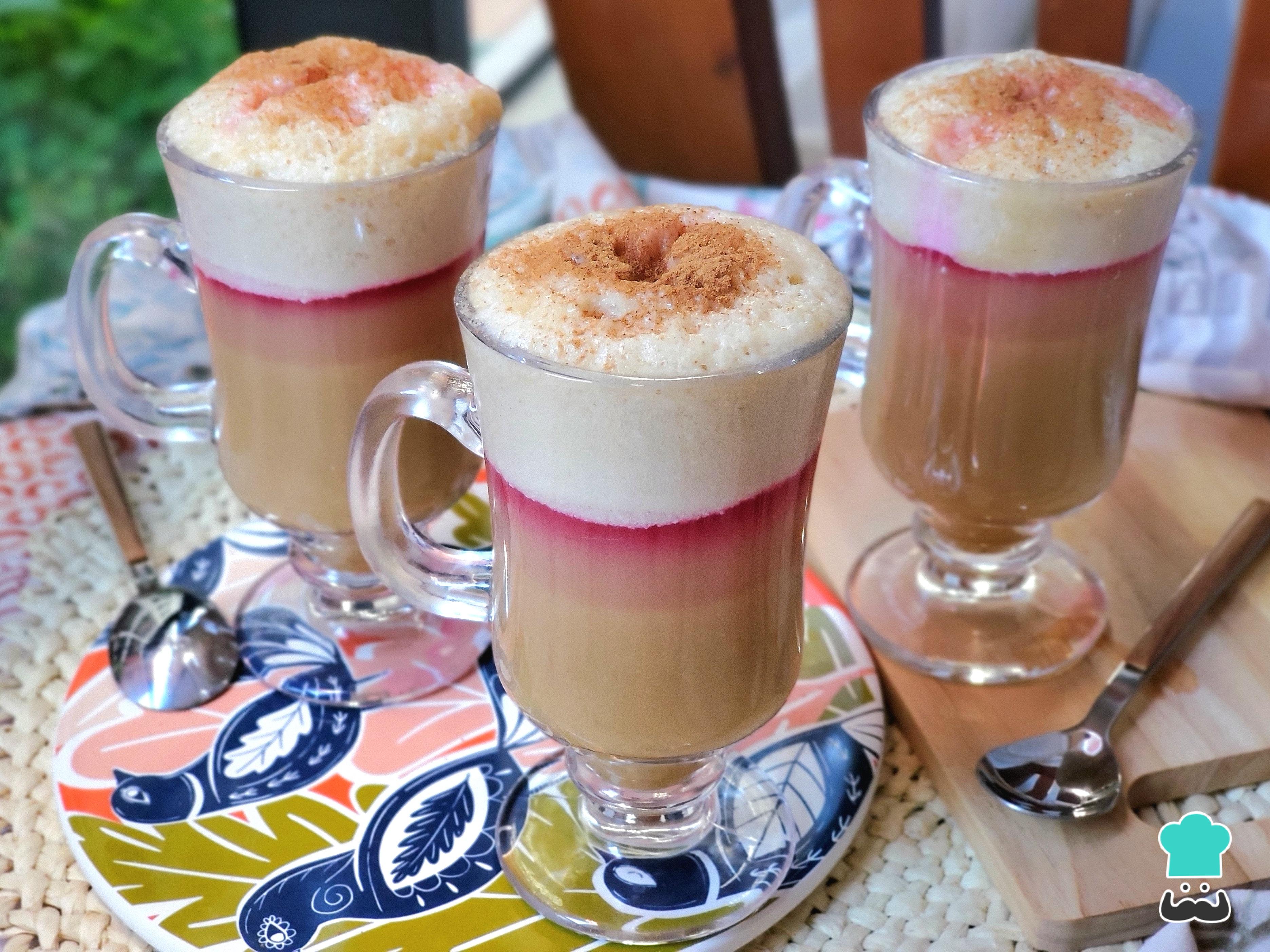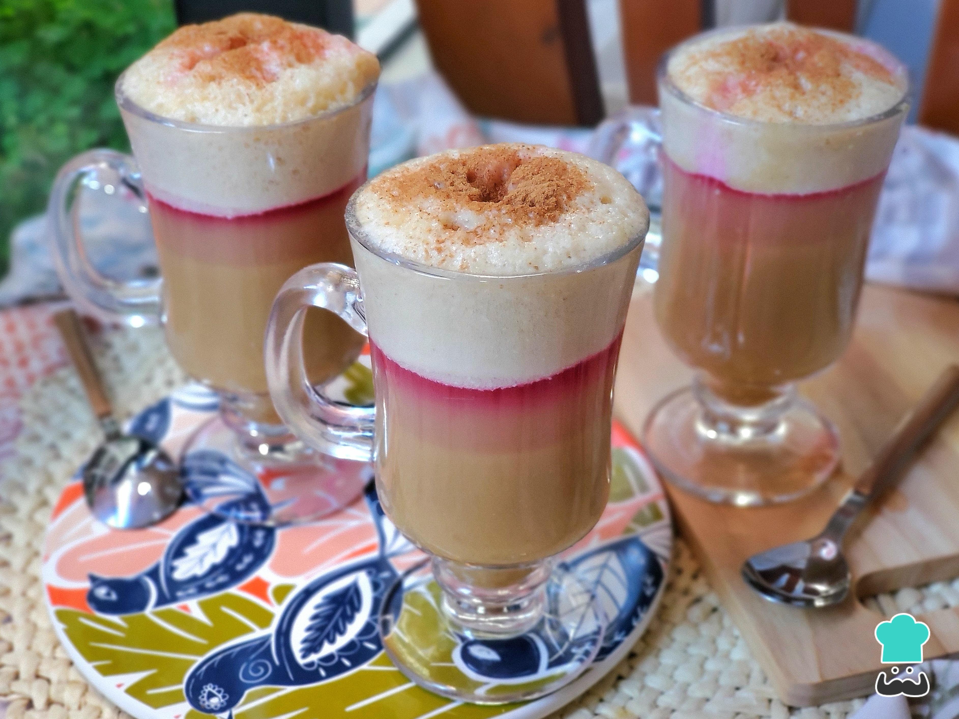 Sirve inmediatamente para degustarlo bien caliente, llenando unas tazas transparentes para que se pueda apreciar la separación de las capas y vierte un poco de licor de airampo encima. Por último, decora con un poco de canela en polvo. ¡A disfrutar! Cuéntanos en los comentarios tu opinión y comparte con nosotros una fotografía del resultado final.