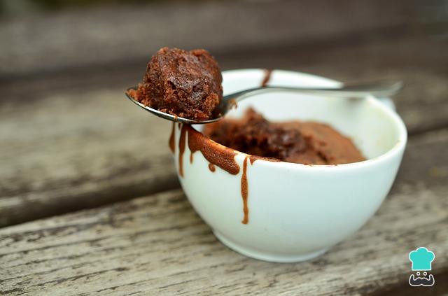 Luego, meter el postre de chocolate al microondas y cocinar por 1:50 (un minuto y 50 segundos). Lo sacamos y esperamos uno o dos minutos para que se enfríe pero no del todo. Lo ideal es el mug cake tenga una temperatura que sea intermedia para que la podemos consumir.