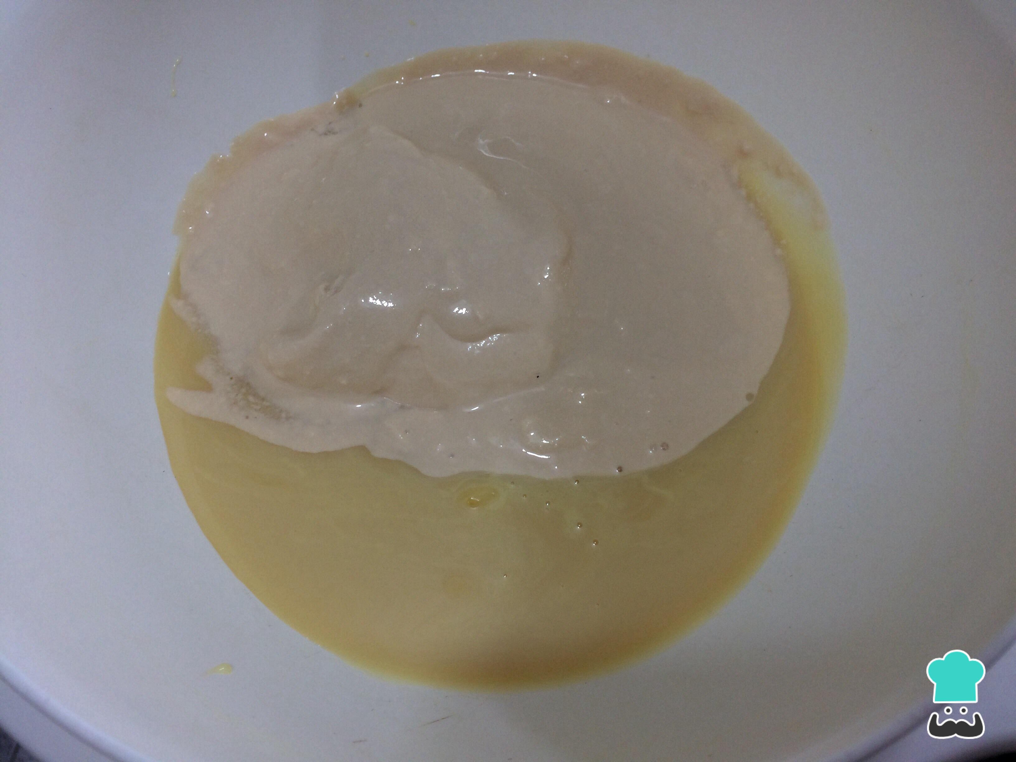 Añade el zumo del limón sin parar de batir, ya que se puede cortar la preparación. En este paso, notarás que espesa un poco la mezcla, justo o que queremos.