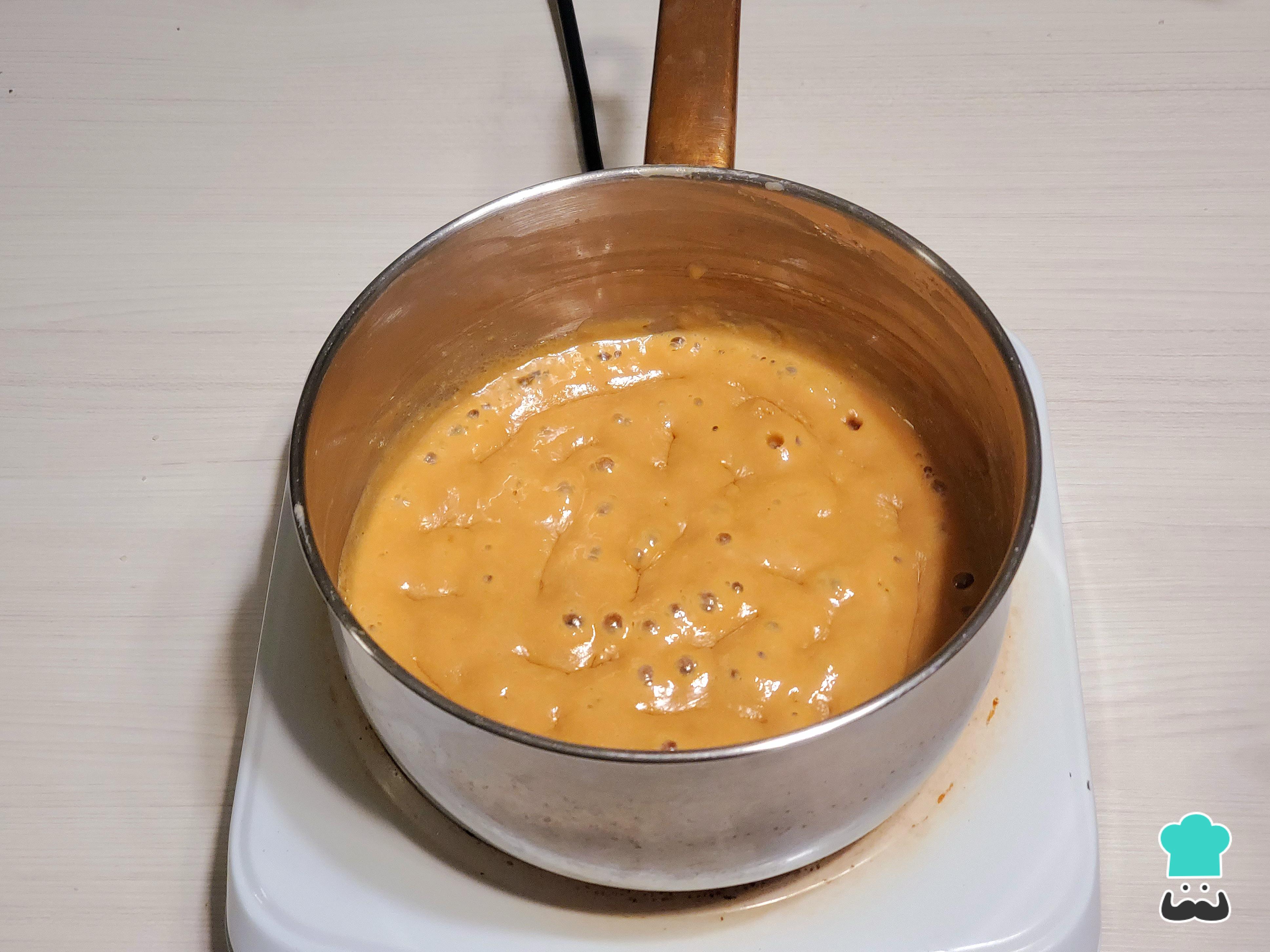 Deja que hierva hasta que la mezcla se reduzca, lo cual tomará alrededor de 30 minutos. Durante este tiempo, cuando la mezcla se espese, asegúrate de remover constantemente para evitar que el fondo se queme.