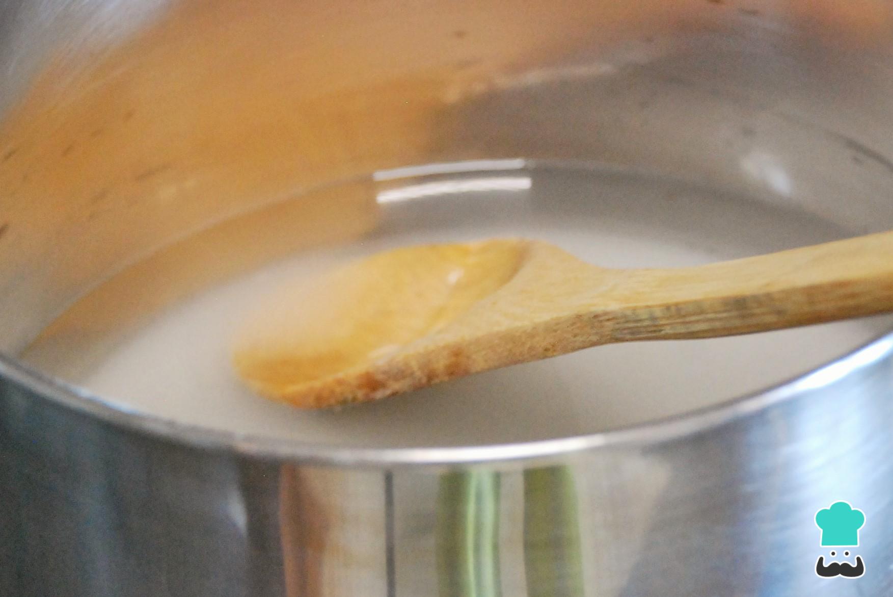 Reserva los cuadros de gelatina, coge un recipiente aparte y disuelve la gelatina sin sabor en agua. Recuerda que la cantidad de agua se especifica en las instrucciones de paquete. Luego, añade la leche condensada junto con la crema de leche y mézclalo bien.