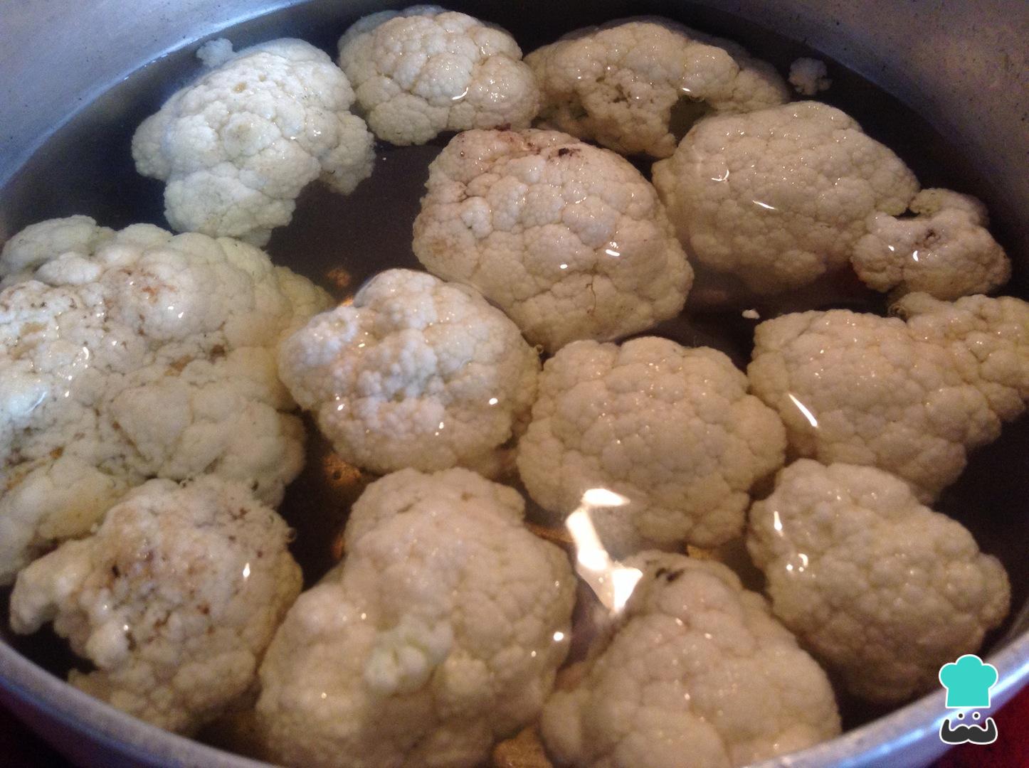 Retira los tallos de la coliflor, corta los arbustos y lávalos para retirar el exceso de tierra que contenga nuestra materia prima. Lleva los arbustos de coliflor a una olla con abundante agua y cocinar hasta que estén blandos, resérvalos.