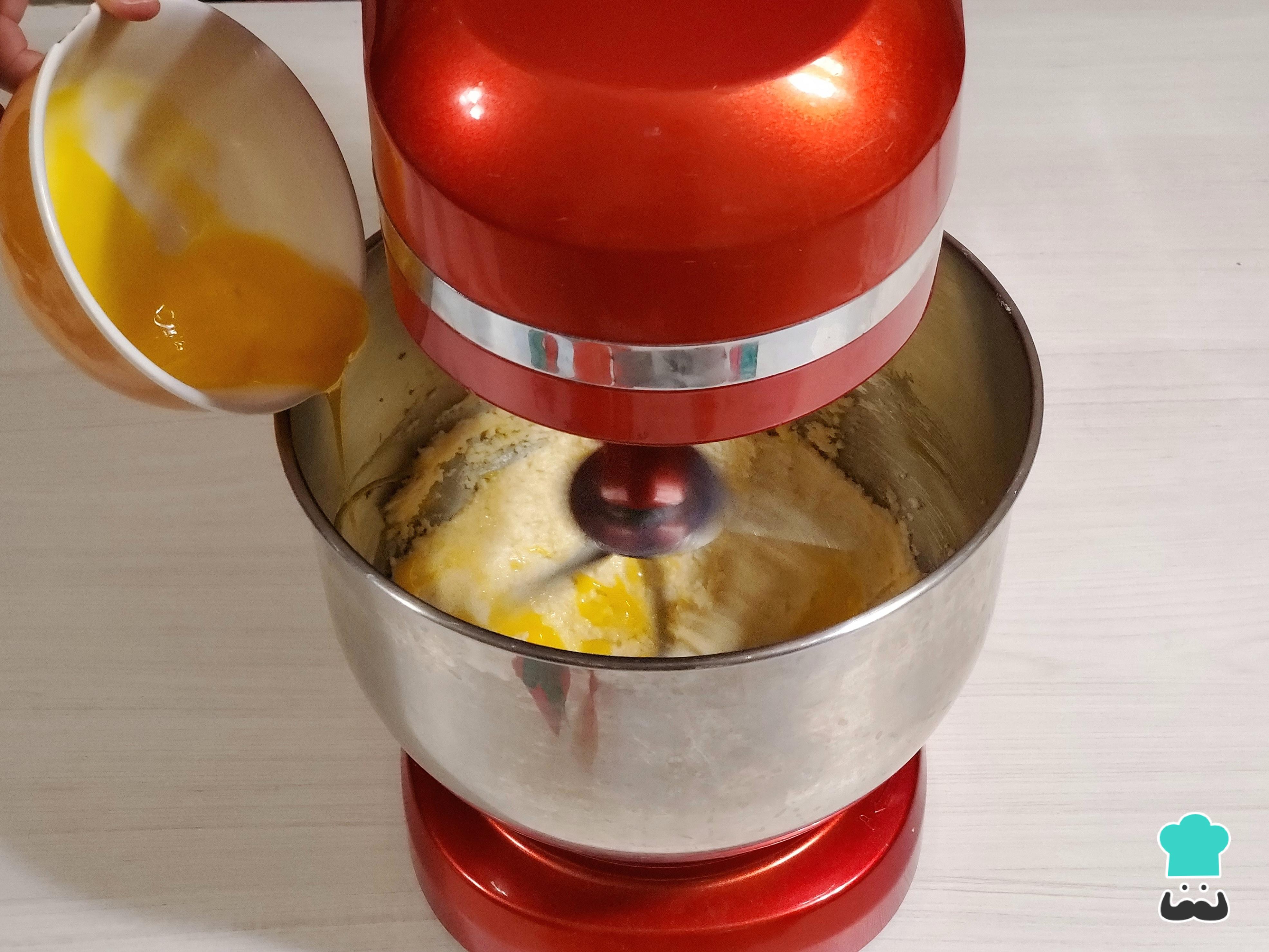 Incorpora los huevos uno a uno. Cada vez que incorpores uno, bate a máxima velocidad para que se integren a la crema de mantequilla sin que se vea cortada. En este momento, puedes aromatizar la mezcla añadiendo esencia de vainilla, de naranja, de almendras o incluso ralladura de cáscara de limón.