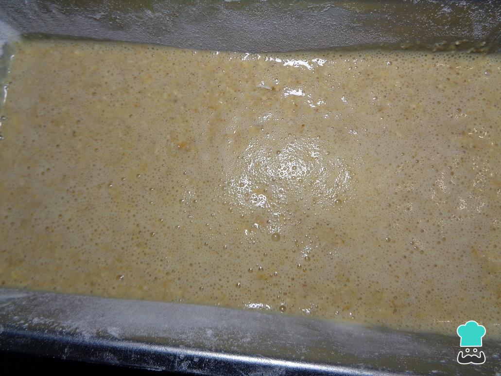 Y ahora colocamos nuestra mezcla para el queque de avena sin harina en un molde previamente engrasado y enharinado. Lo llevamos a hornear por 30 minutos a 180 °C.
