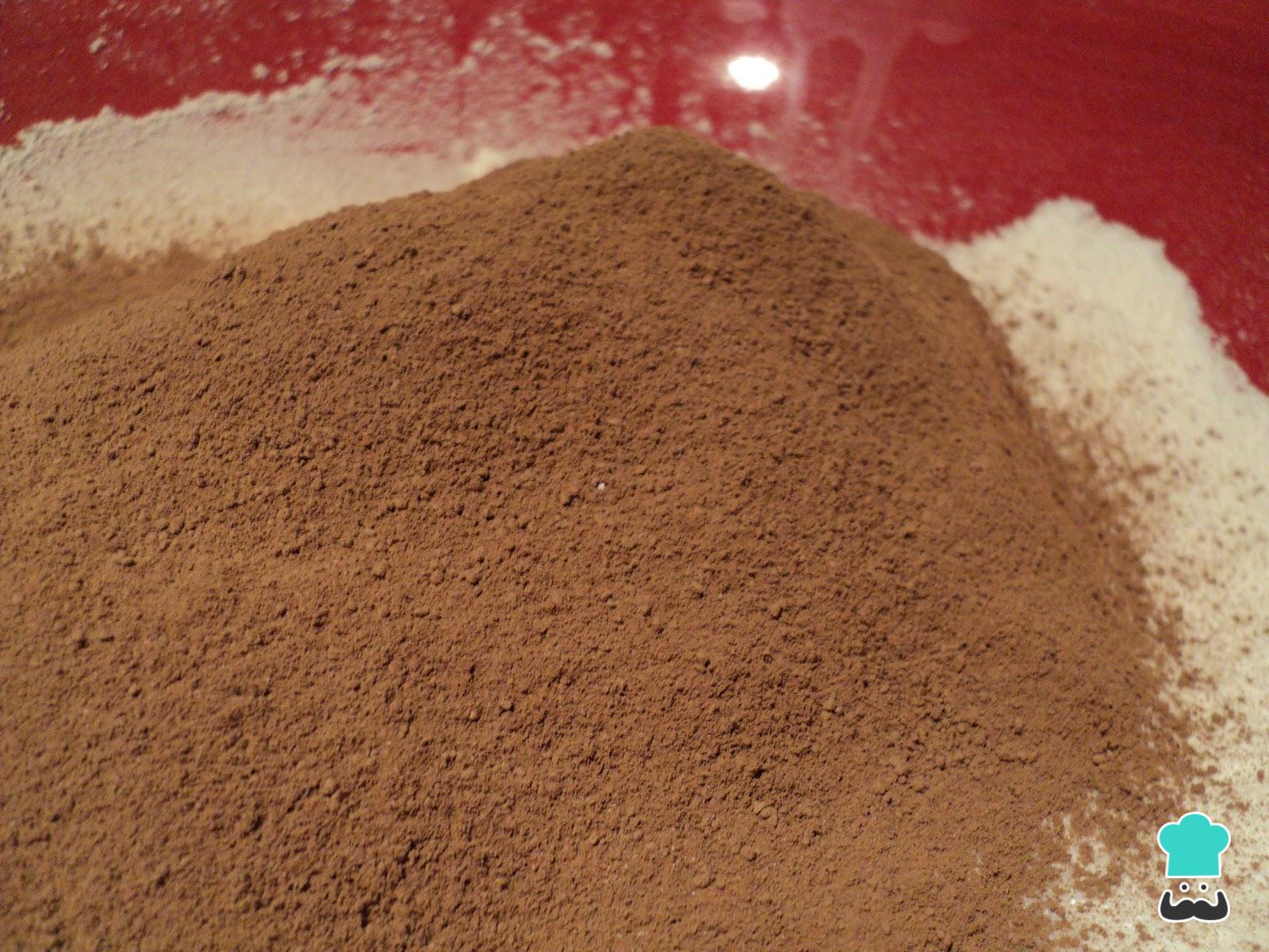 En un bowl se mezclan los ingredientes secos: harina, azúcar, cocoa, bicarbonato, polvo de hornear y la sal.