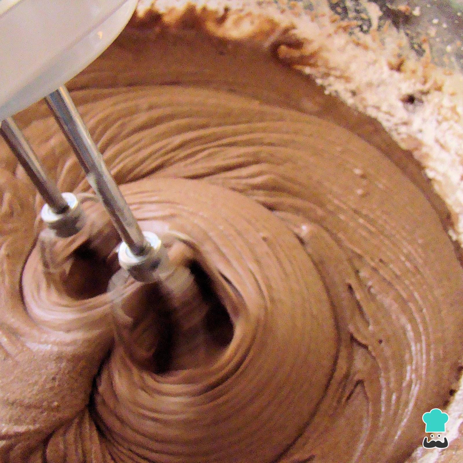 En la batidora, a velocidad media, se baten los huevos y el aceite y luego se le agregan la leche y el vinagre. Cuando este todo bien mezclado se le incorporan los ingredientes secos poco a poco y por último se le echa el café caliente.