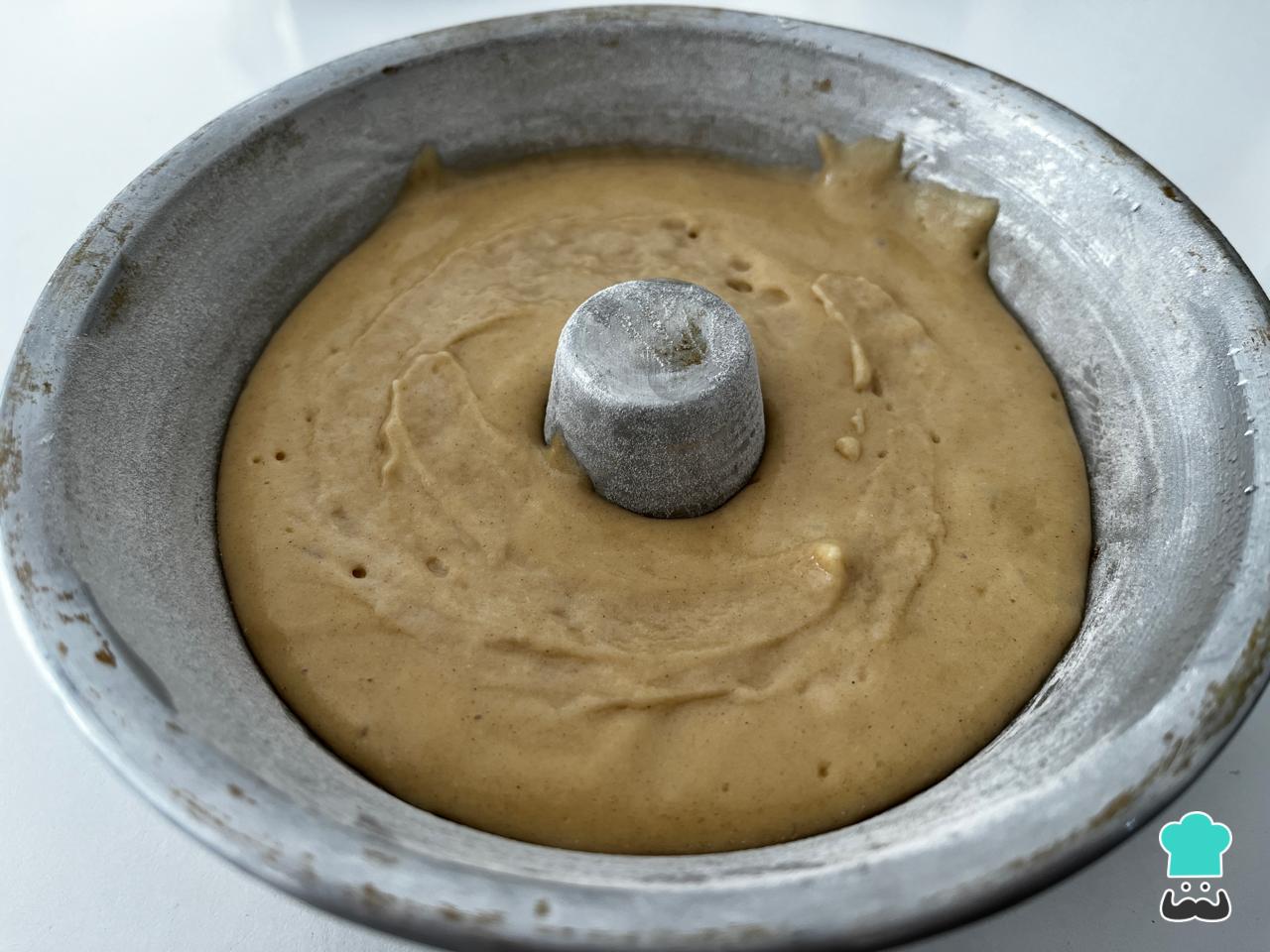Dispón la preparación de tu queque de leche en el molde, en este caso savarín de 16 centímetros de diámetro, engrasado y enharinado. Cocínalo en el horno precalentado a 160 ºC por unos 30 minutos o hasta que, al pincharlo, no salgan restos de la preparación.