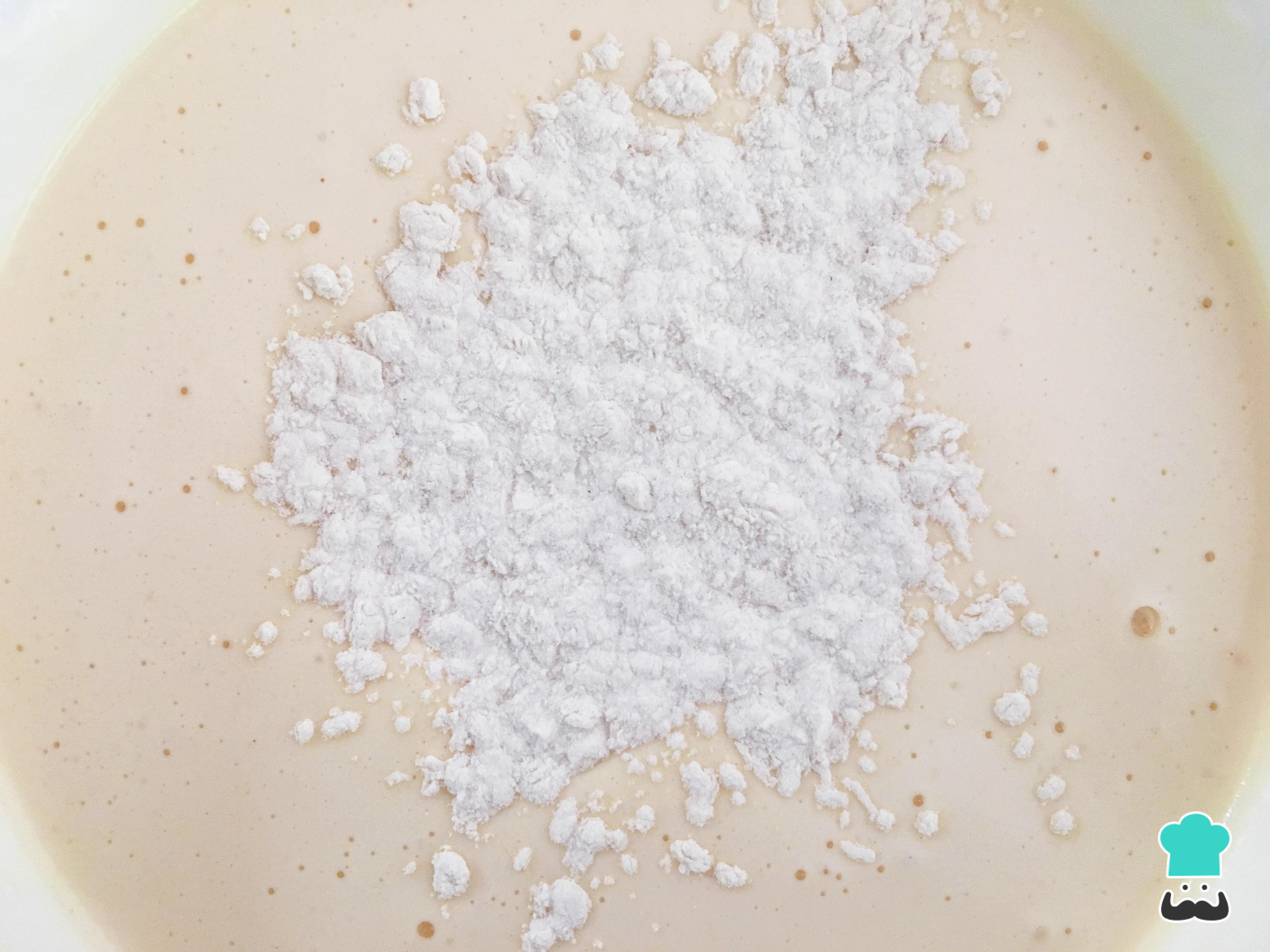 Cierne la mezcla de los ingredientes secos (la harina, el bicarbonato y el polvo de hornear) y añádelos a la mezcla. Mezcla con el batidor en una velocidad más lenta hasta que los ingredientes se integren.