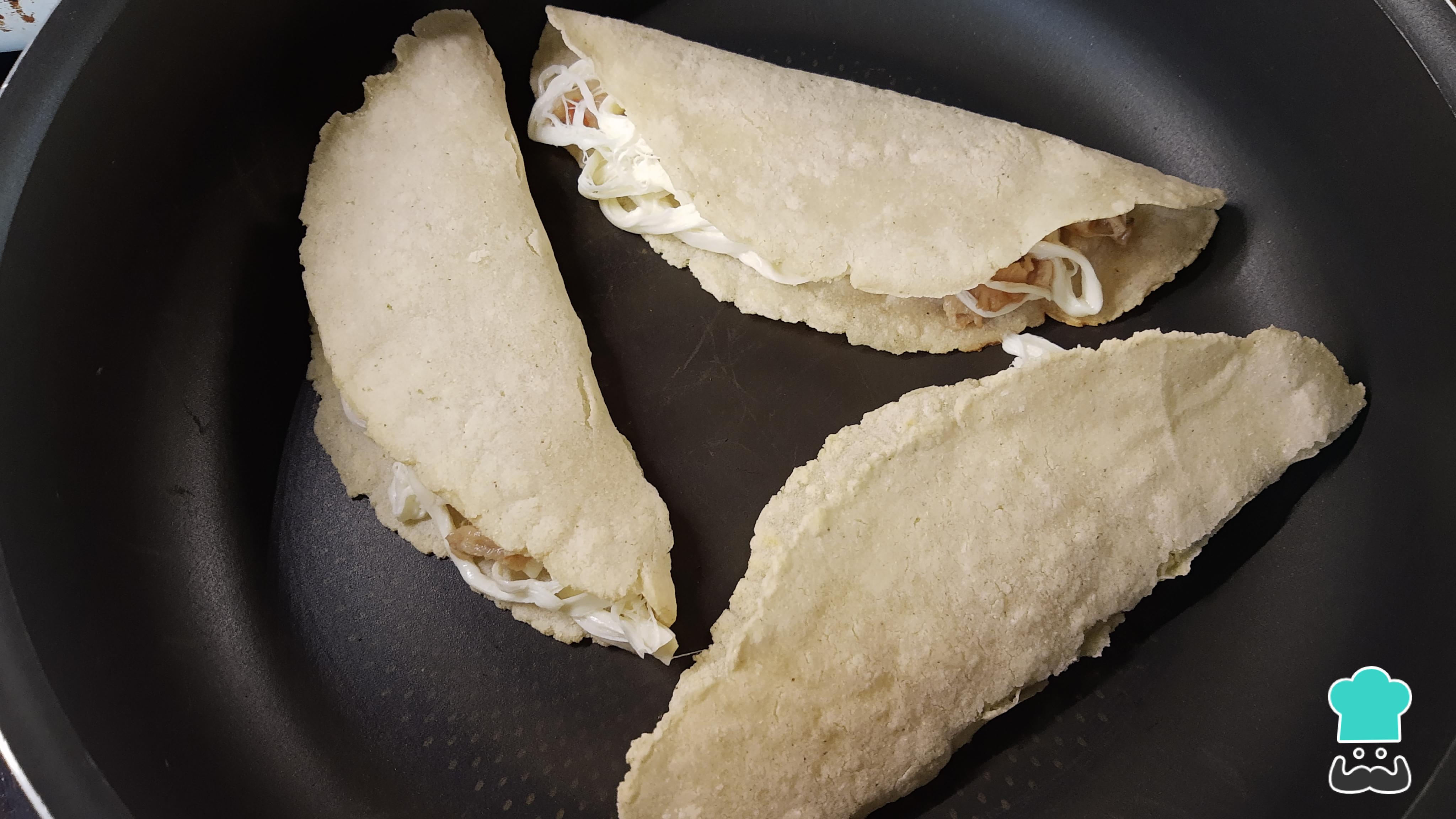 Lleva directamente a un comal o sartén para que el queso se funda y la tortilla se tueste un poco. Puedes agregar un poco de aceite para que se doren un poco y tomen una textura más crujiente.