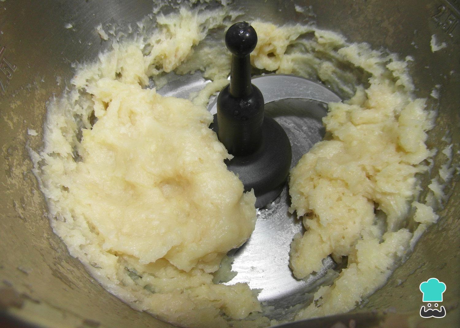 Tritura la yuca junto con el aceite y la sal con una batidora o picadora eléctrica hasta conseguir un especie de masa y luego forma una bola.