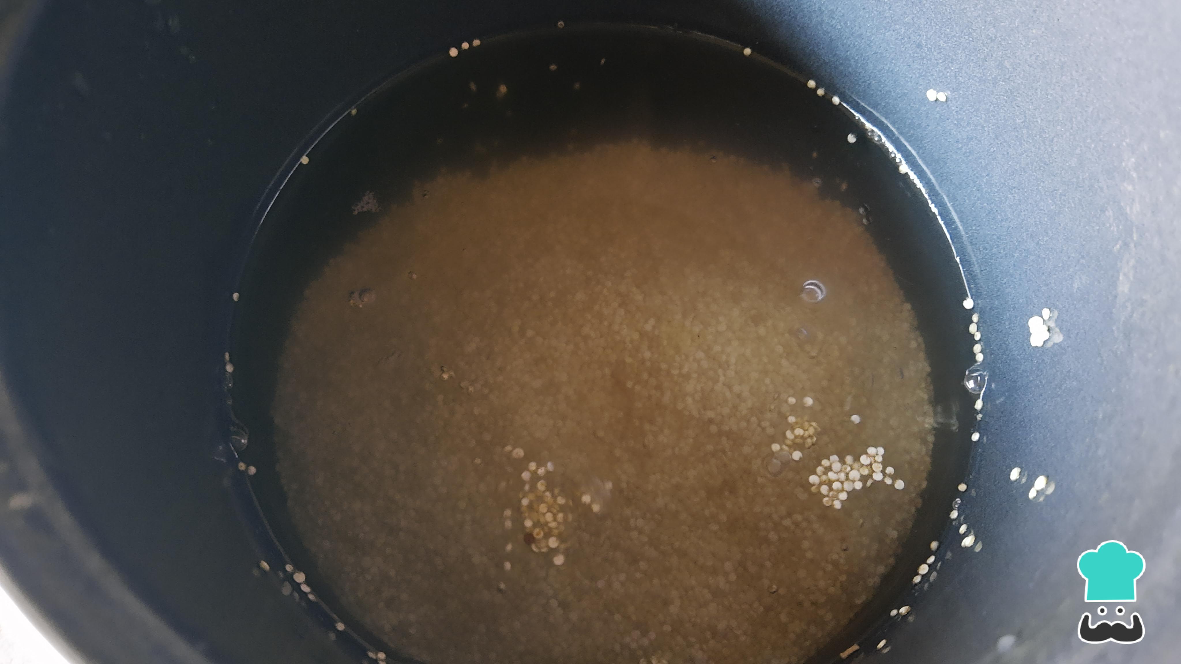 ¿Te preguntas cómo preparar quinoa con verduras? Pues bien, para empezar esta receta de quinoa con verduras salteadas primero enjuaga la quinoa en un chorro de agua para limpiarla bien. A continuación, lleva a cocer con 480 mililitros de agua (dos tazas de agua) aproximadamente 15 minutos o hasta que se haya consumido el agua. Luego, reserva y deja enfriar.