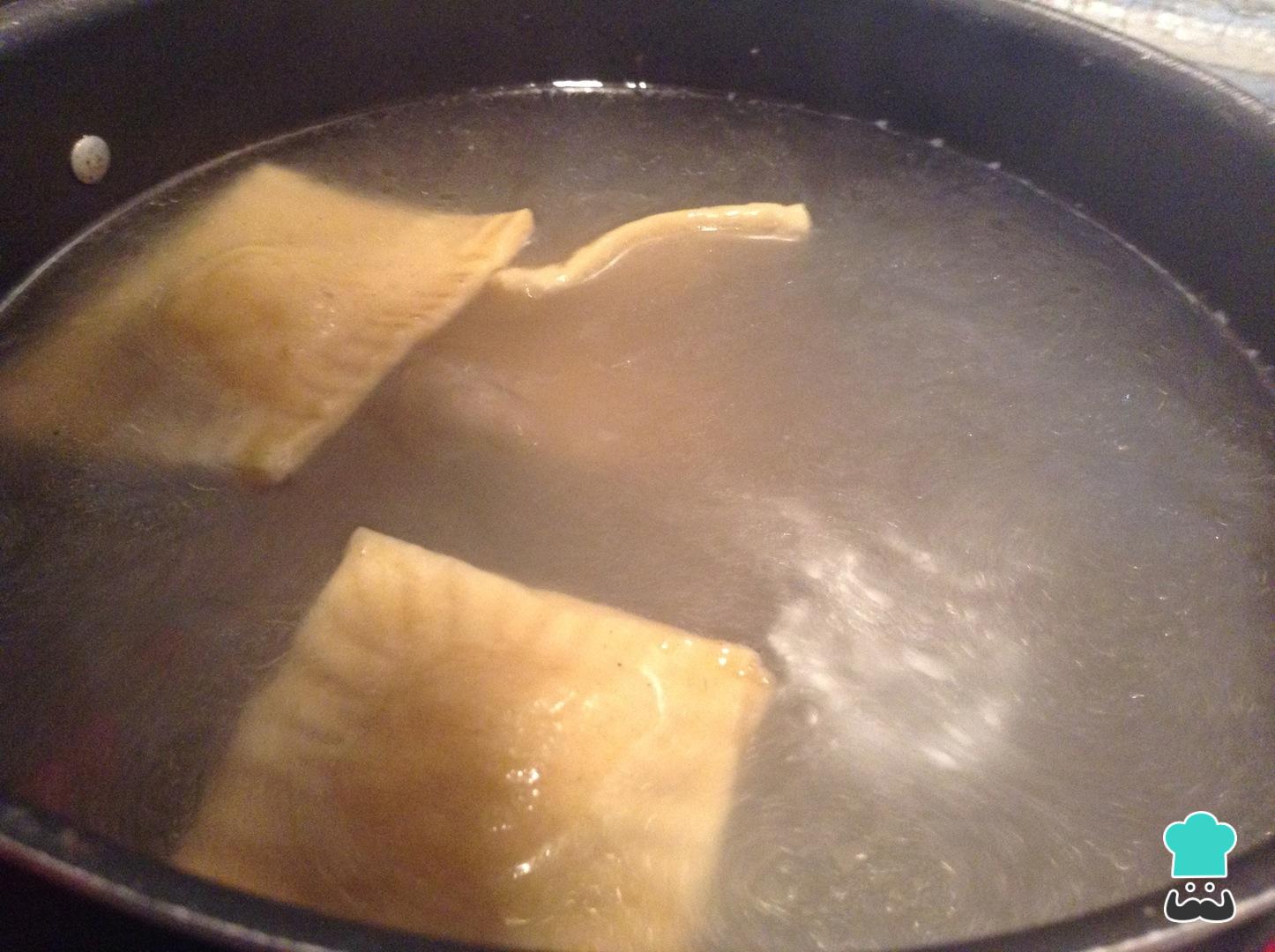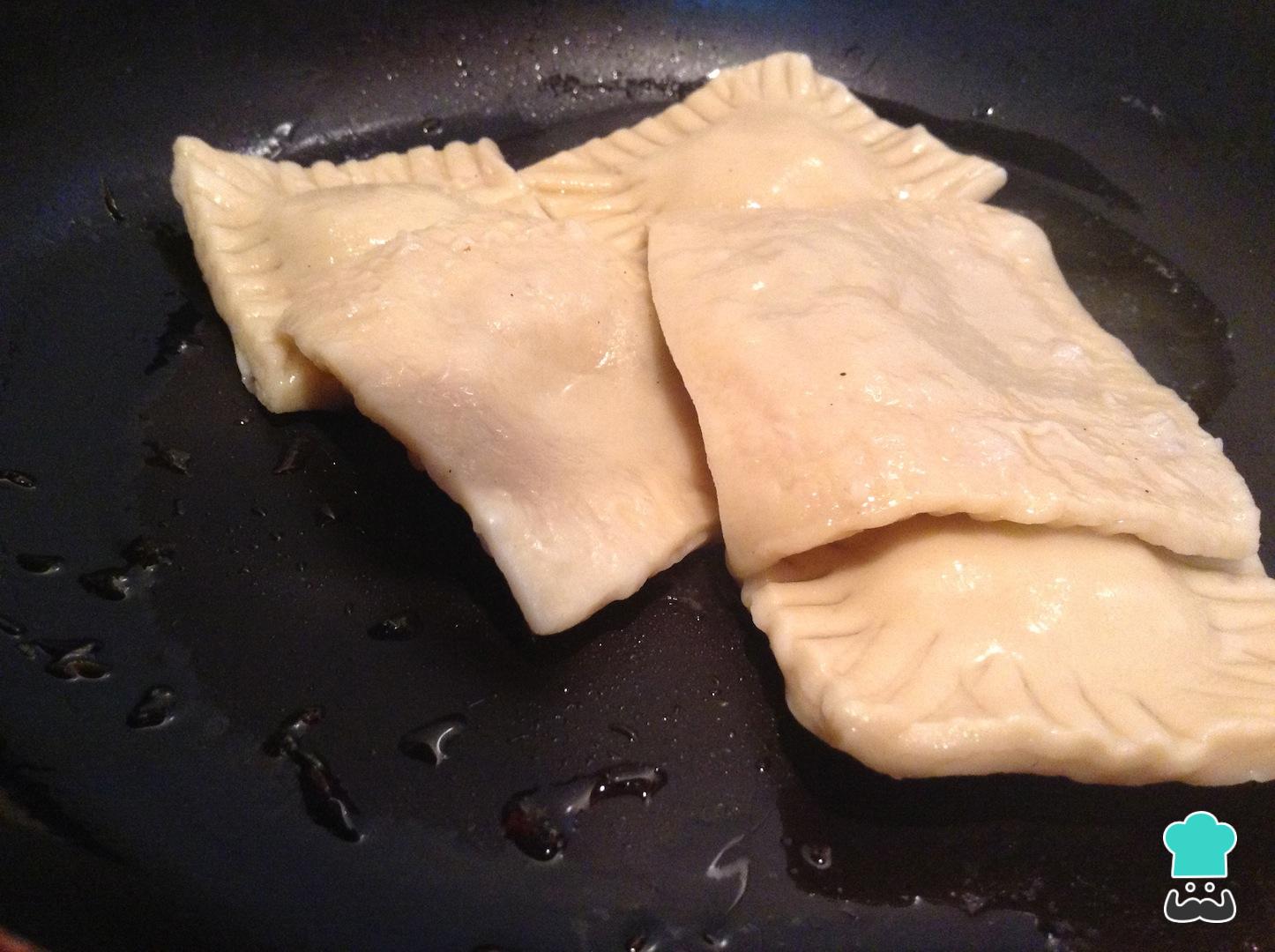 Lleva una olla con suficiente agua a fuego y, una vez el agua esté a hirviendo o a punto de ebullición, añade los raviolis y cocínalos hasta que estén al dente o blandos. Retira del agua y reserva.