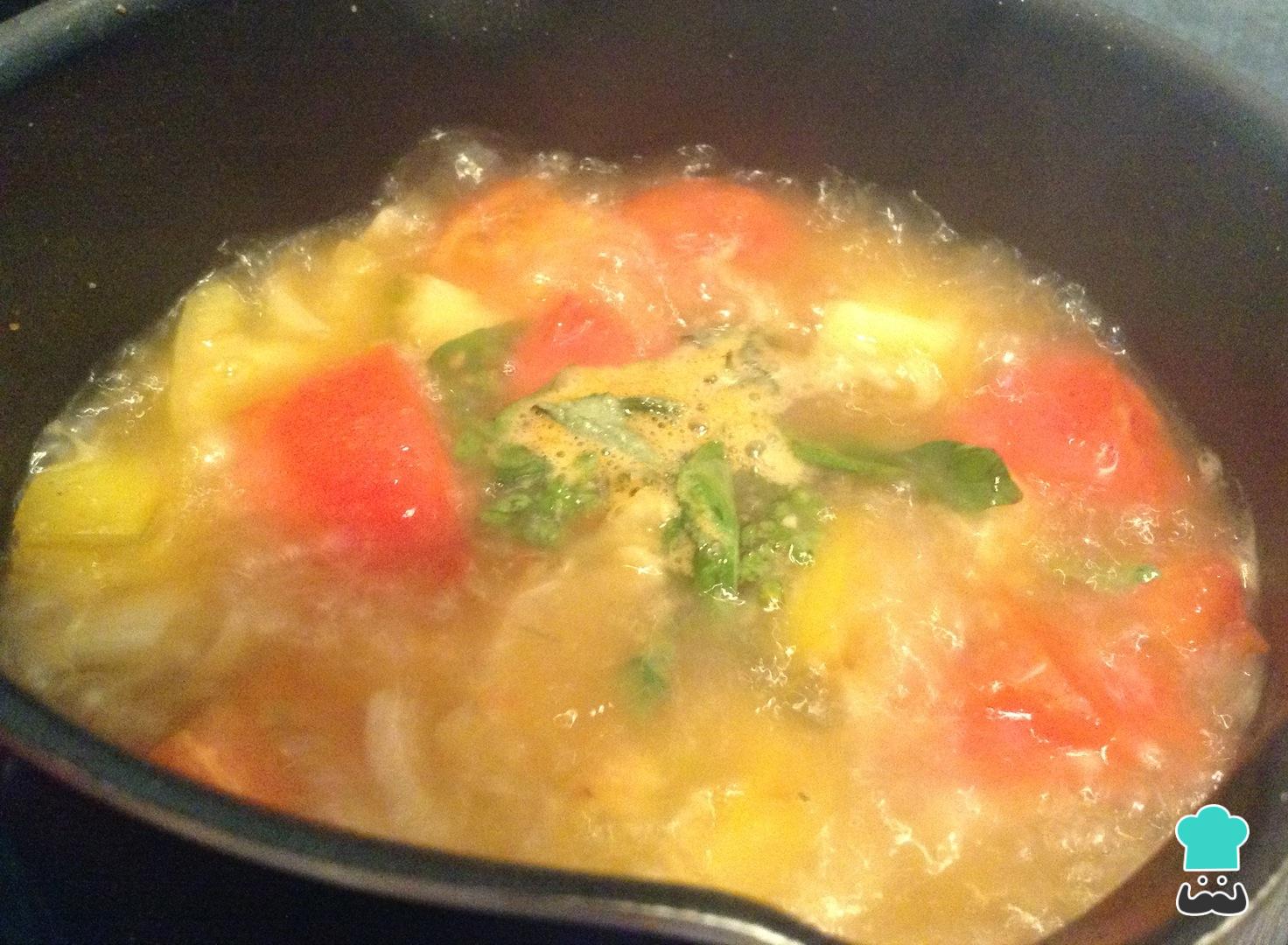 Mientras tanto, cuando los ingredientes de la salsa se hayan salteado durante algunos minutos, vierte agua hasta cubrirlos y deja que se cocine todo durante 20 minutos más. Pasado este tiempo, apaga el fuego y deja que se enfríe.