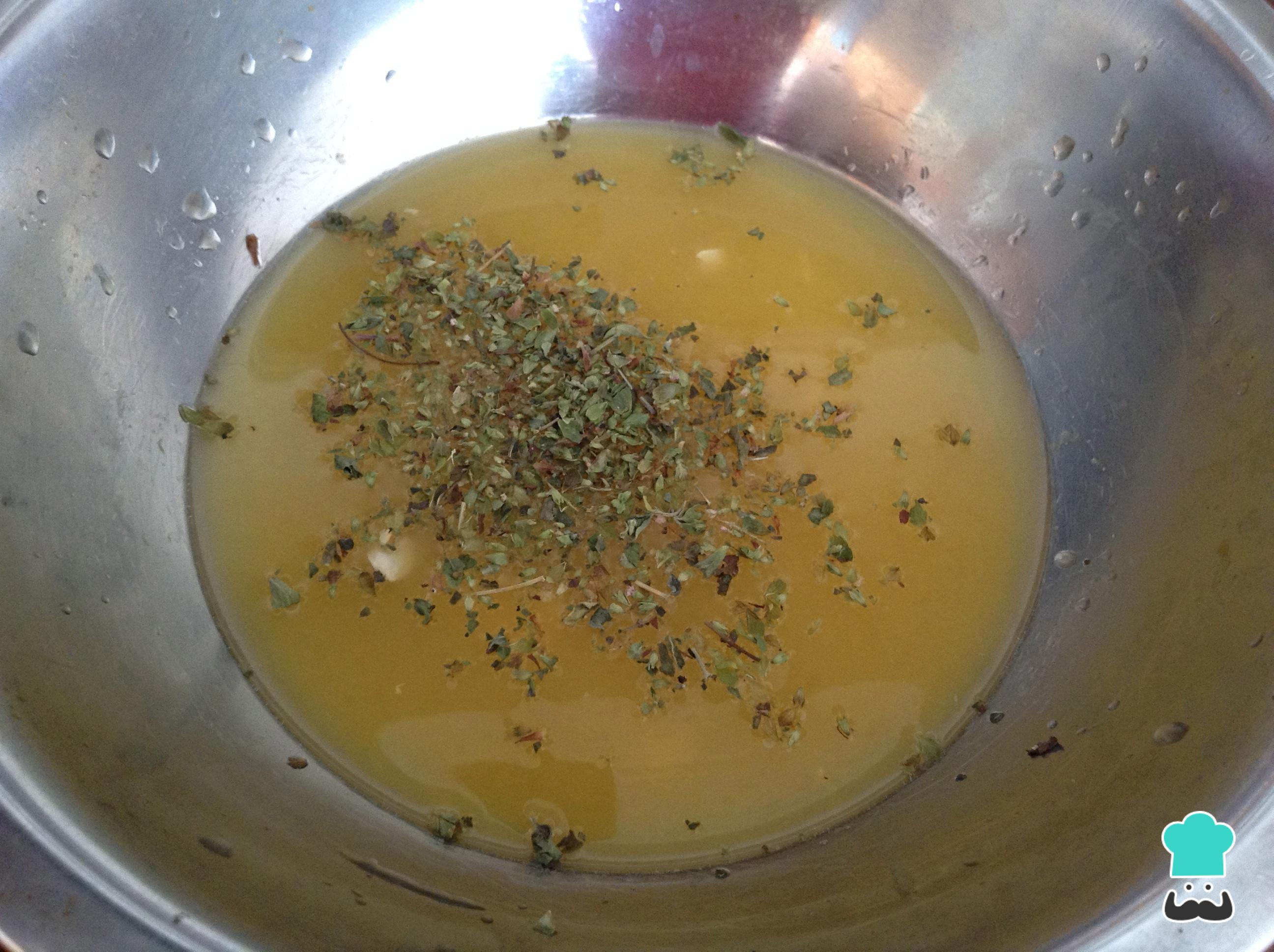 En un bol agrega el zumo de las naranjas, un poco de ajo en pasta, orégano y una cucharada de miel de abejas para realizar el marinado del pollo relleno para Navidad.