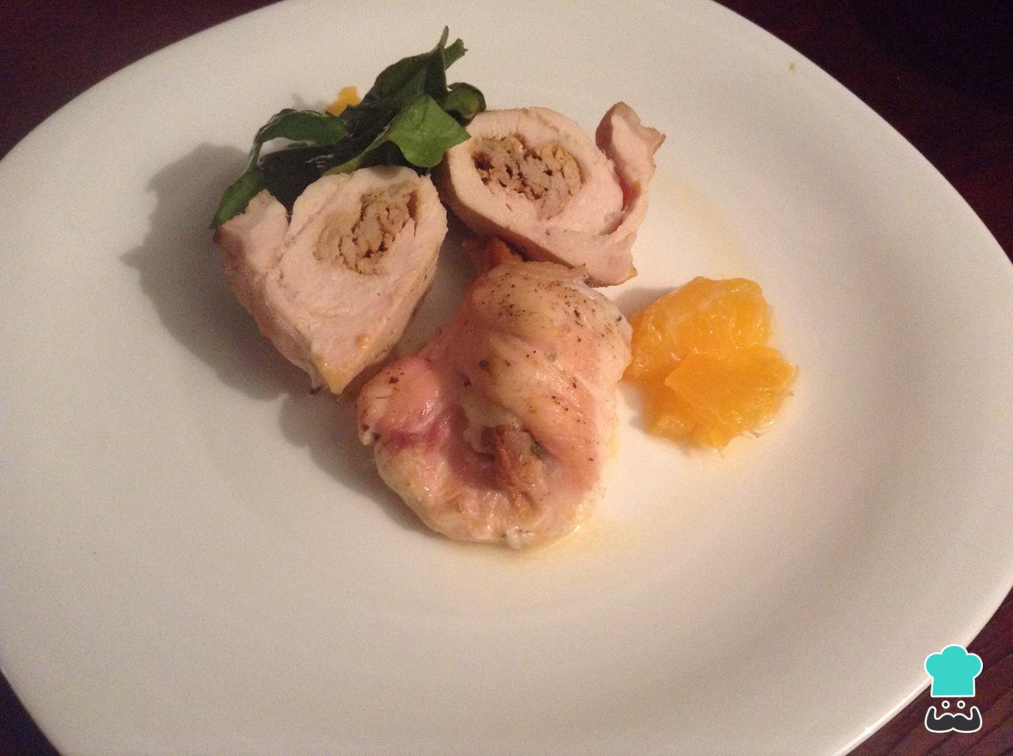 Cómo hacer Redondo de pollo relleno con carne picada: