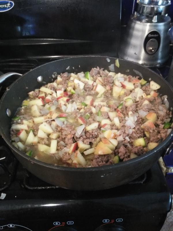 Agrega la manzana roja cortada en cubos pequeños. Cocina a fuego bajo hasta que esté blanda (aproximadamente 10 minutos).
