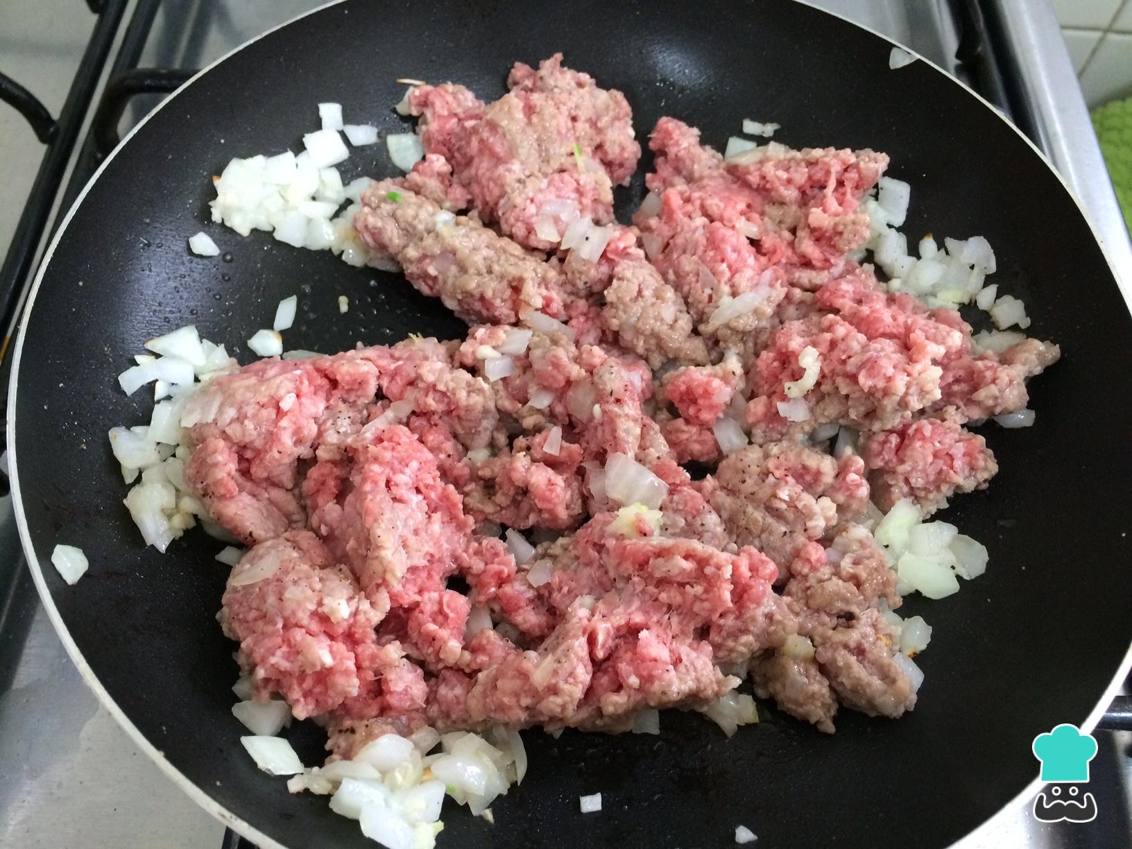 Agrega la carne molida y salpimienta. Sofríe a fuego alto hasta que esté cocinada y dorada.