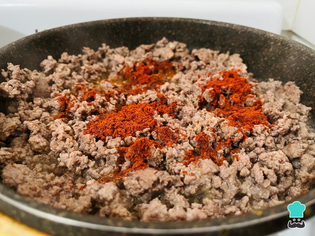 Cuando cambie de color, agrega los condimentos a gusto. En este caso pimentón, ajo molido y comino.