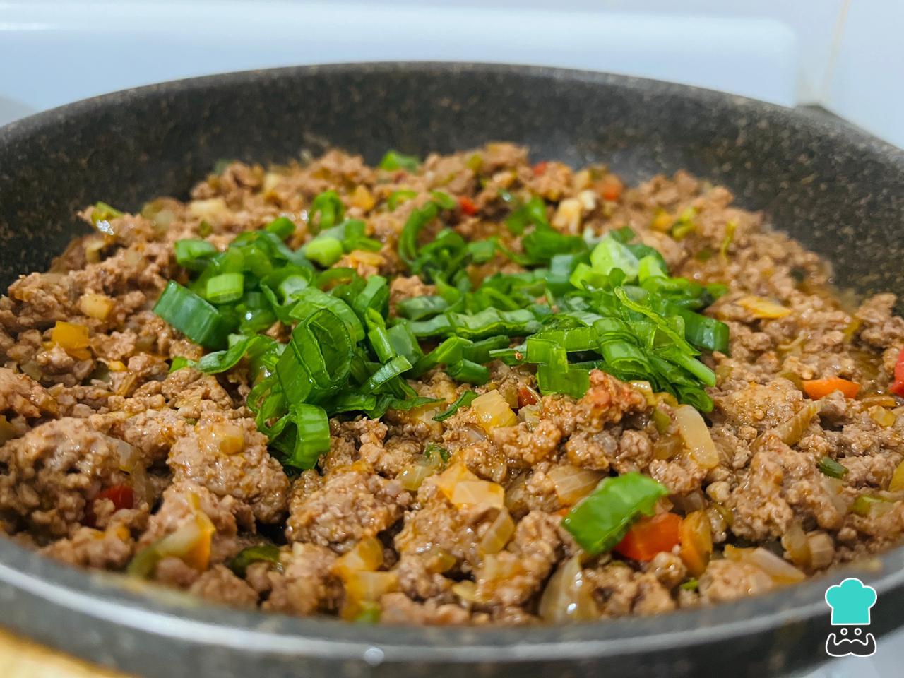 Agrega las verduras salteadas previamente y las hojas del verdeo. Tapa el relleno y cocina a fuego mínimo por 20 minutos.