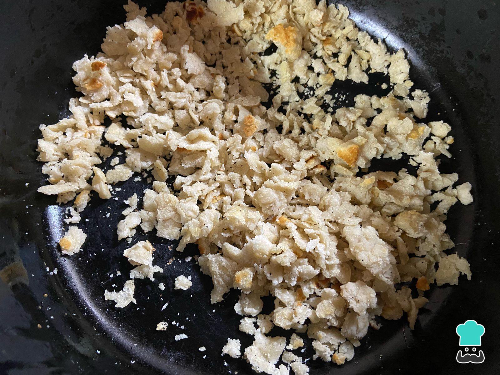Comienza a romper la masa con la ayuda de una espátula o cuchara.