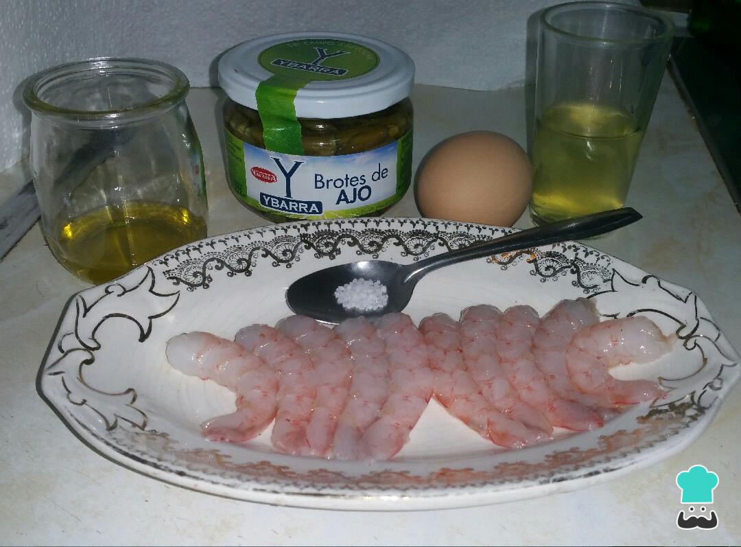 Alistar los ingredientes del revuelto de ajetes de bote.