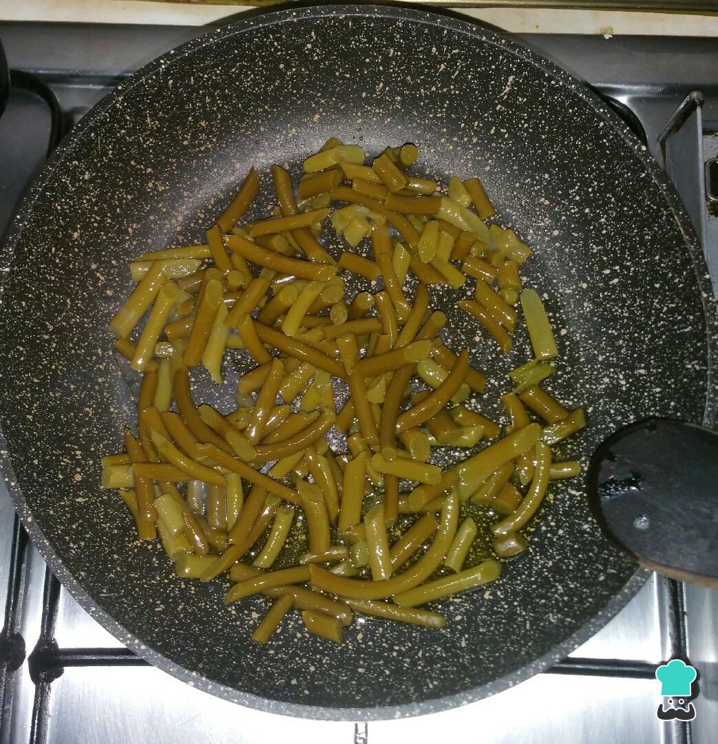 Ponemos los ajetes en una sartén con un poco de aceite. Removemos y dejamos que se pongan tiernos. Aproximadamente durante unos 4-5 minutos.