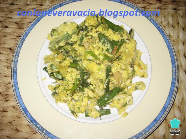 Cómo hacer Revuelto de ajos tiernos y espárragos verdes:
