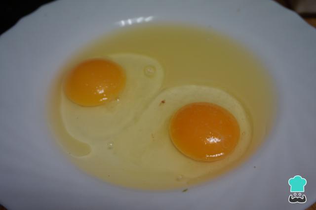 Mientras se cocinan los espárragos, coloca en un plato los huevos con una pizca de sal. Puedes hacer el revuelto de espárragos trigueros en porciones individuales o preparar un buen plato para que cada uno se sirva. Nosotros vamos a optar por las porciones individuales, de manera que ahora vamos a usar dos huevos, ya que calculamos esta cantidad por persona.