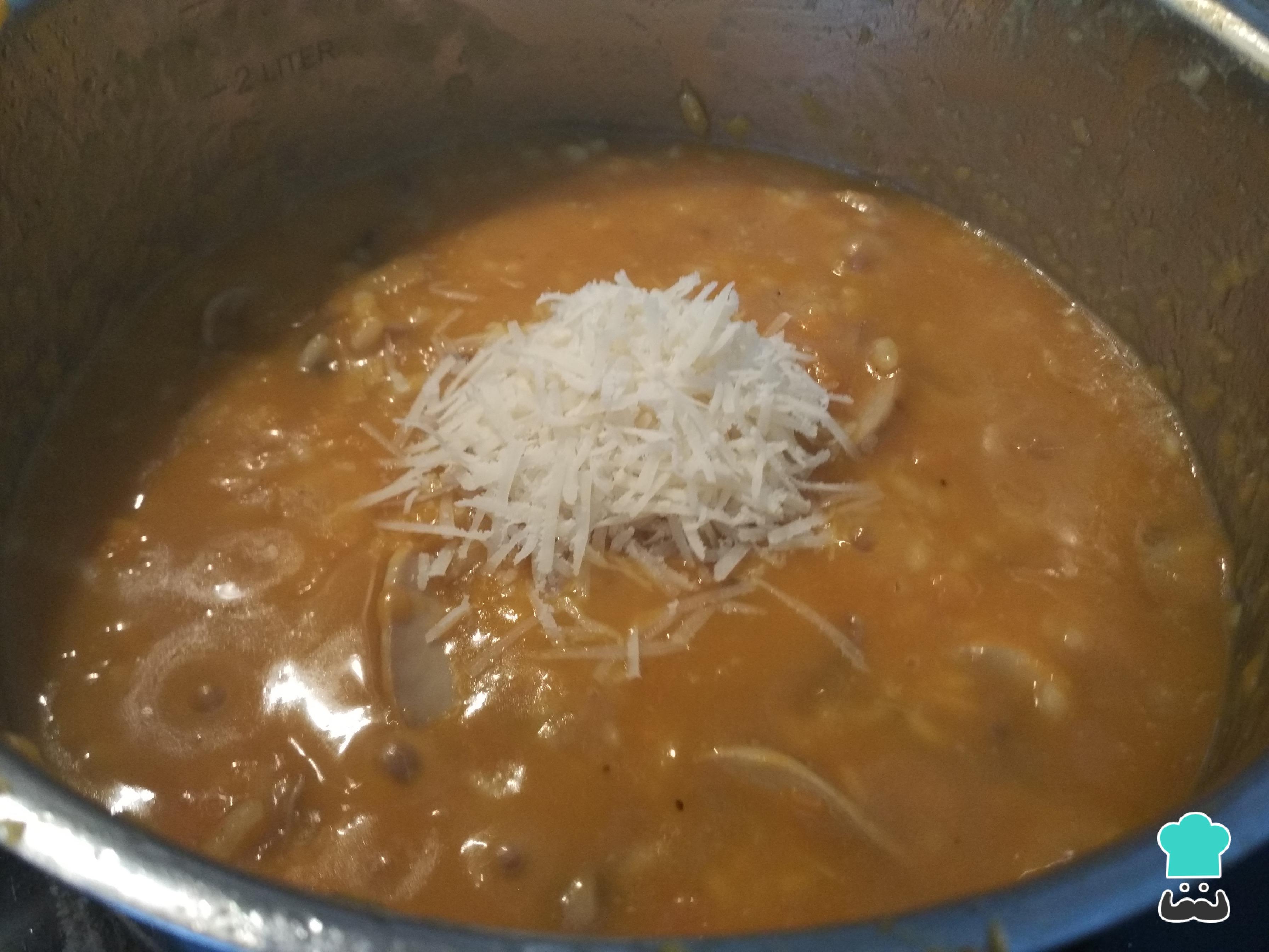 Cuando tengamos el arroz casi listo, ponemos un poco de parmesano rallado y movemos para que se integre su sabor.