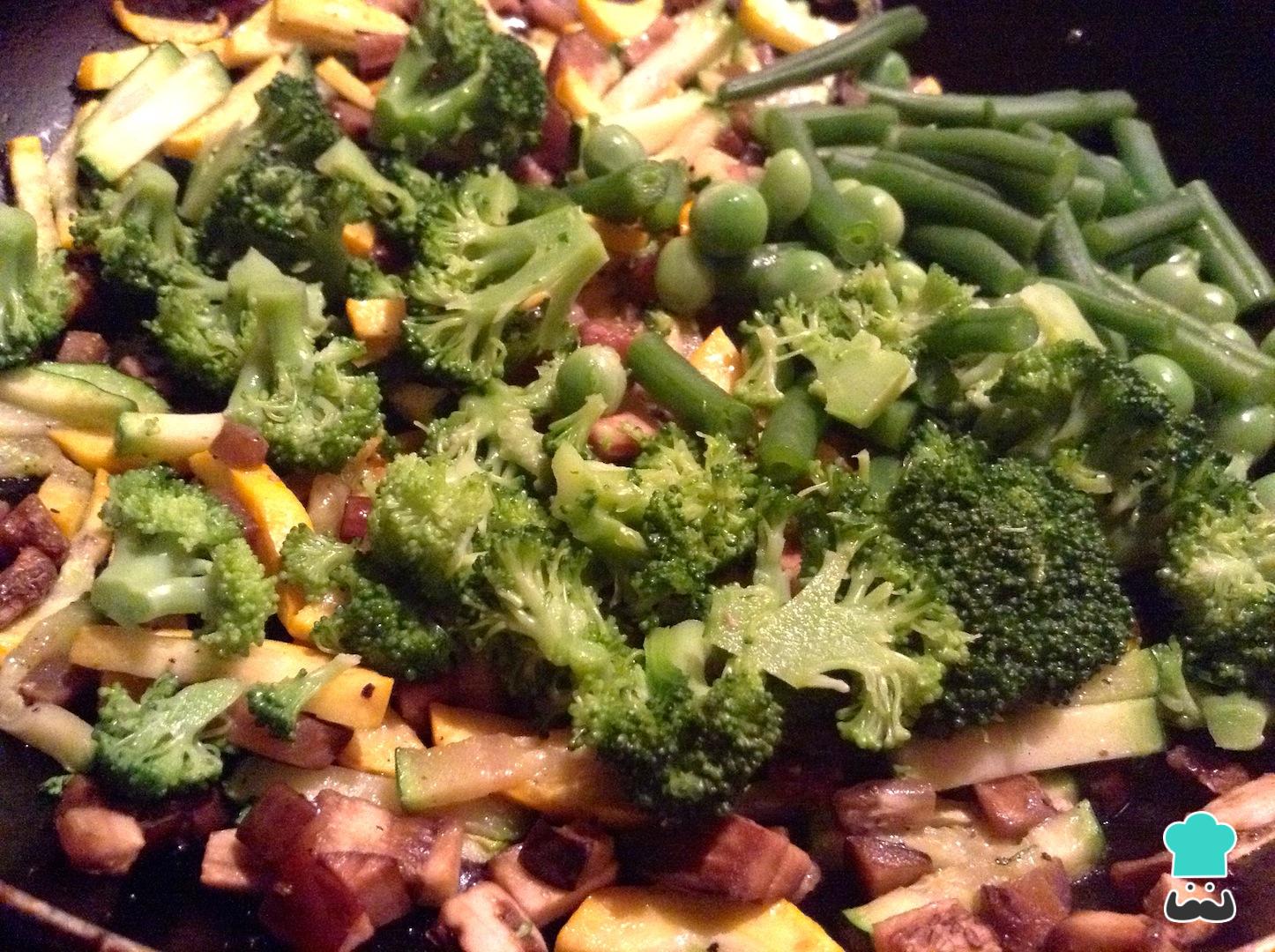 Agrega el resto de vegetales que teníamos reservados y mezcla bien todos los ingredientes. Saltea durante unos cinco minutos más, o hasta que estén crocantes las verduras.