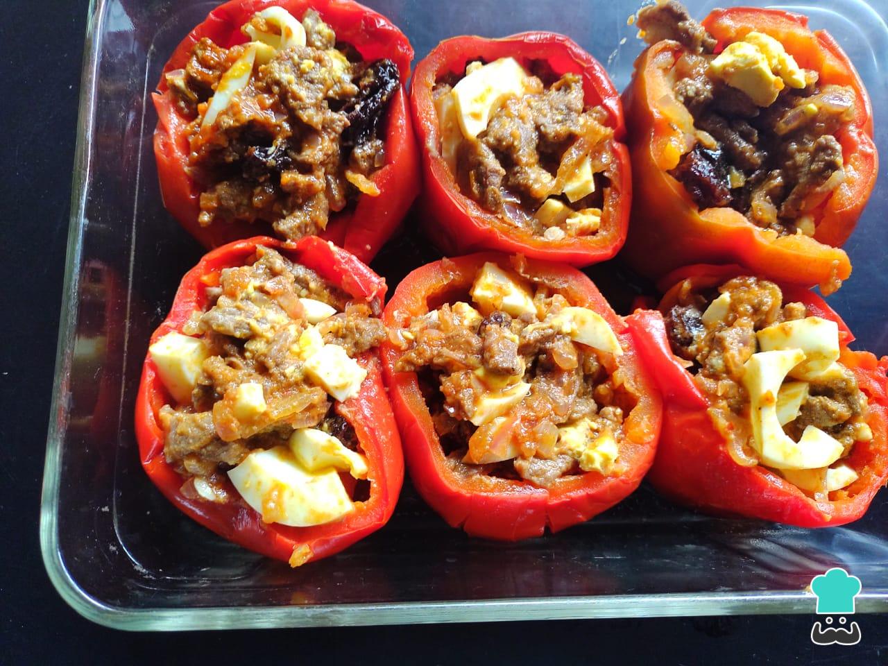 Precalienta el horno a 180 ºC. Seguidamente, coloca los rocotos sobre un recipiente para horno y rellénalos con un par de cucharadas del sofrito.