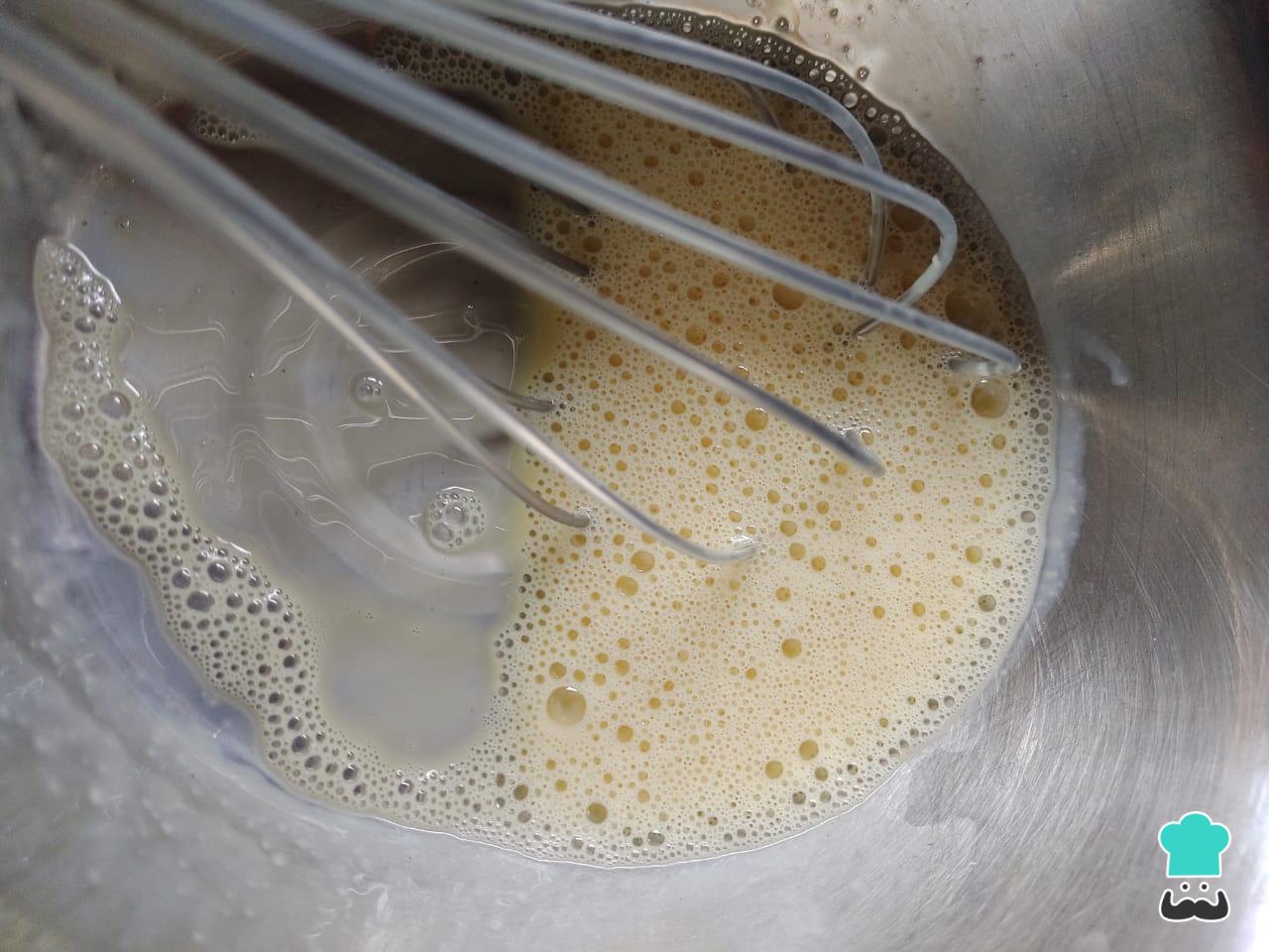 En un recipiente, agrega el huevo y la leche. Bate enérgicamente hasta lograr que la mezcla espese un poco. Viértela sobre cada rocoto relleno para una mejor cocción en el horno.