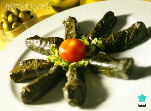 Las hojas de parra las puedes conseguir en una tienda donde vendan ingredientes árabes, si no las encuentra puede sustituirlas por hojas de repollo.