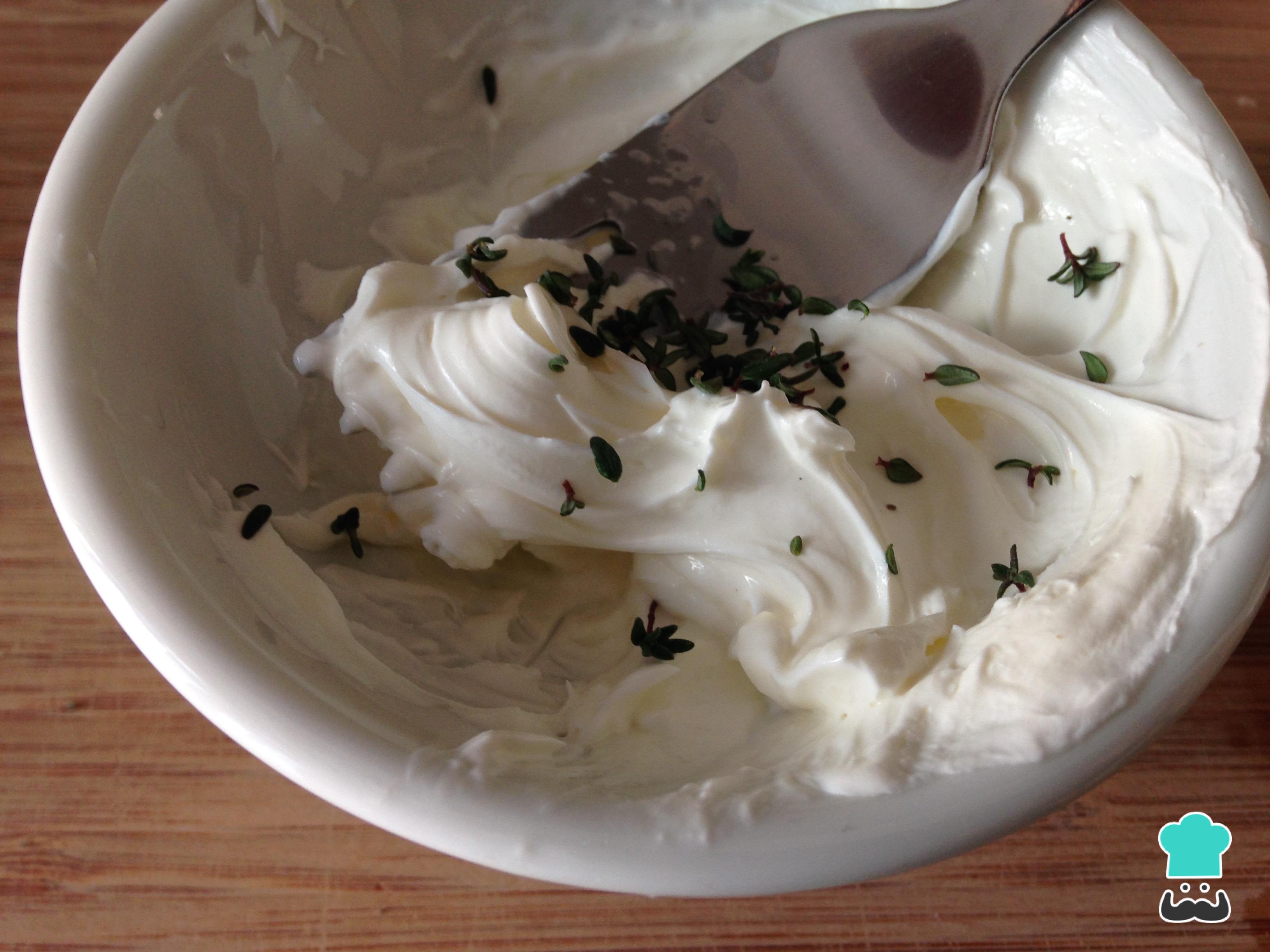 Deshojamos el tomillo y lo agregamos al queso de untar.