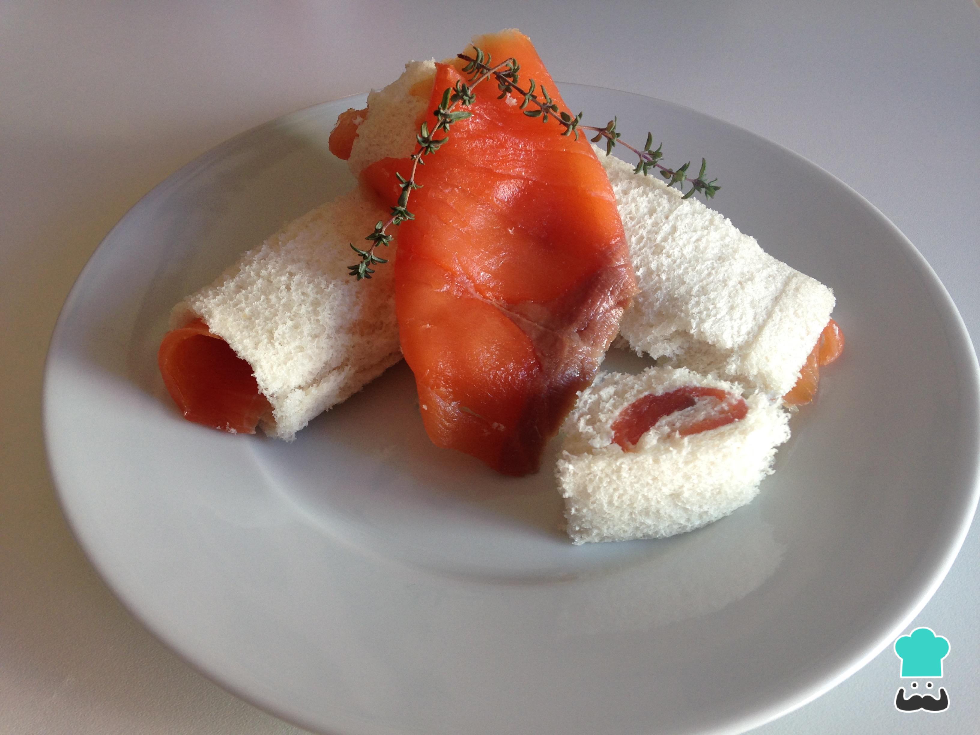 Cómo hacer Rollitos de salmón ahumado con pan de molde: