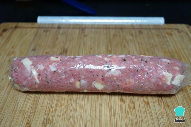 Enrollaremos el rollo de carne picada en film transparente para darle forma de rulo.
