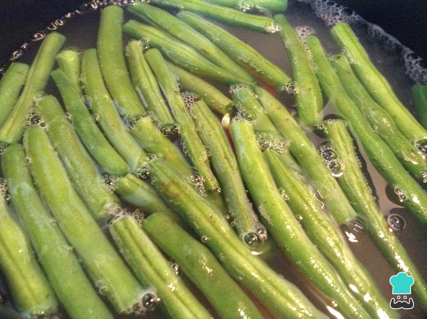 Cocina los habichuelines o judías verdes hasta que estén blandas y retira del agua.