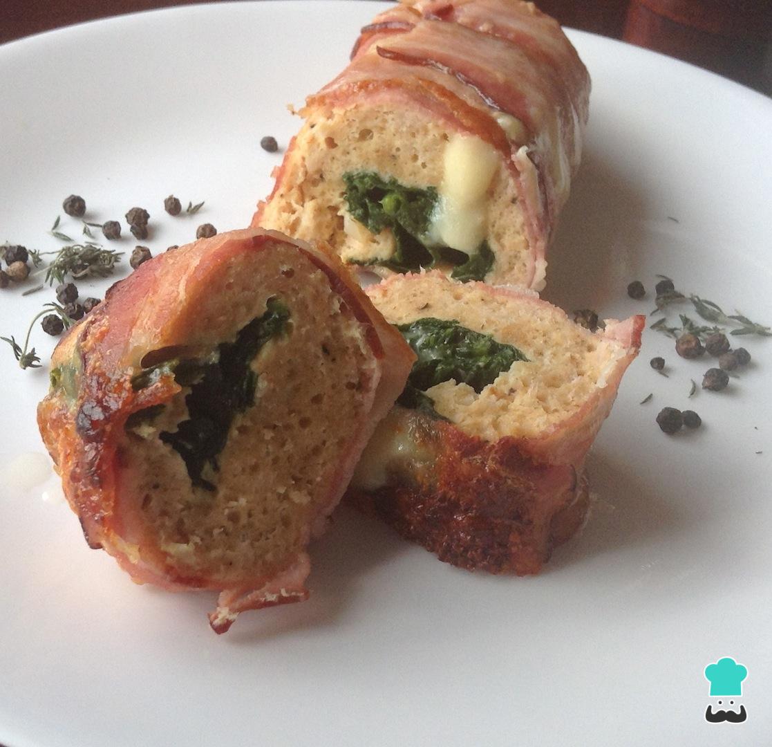En esta ocasión queremos enseñarte a preparar un delicioso rollo de pollo molido, ideal para servir como plato fuerte en el menú de Navidad y sorprender a todos tus invitados. Para darle un toque extra de sabor, vamos a envolver el rollo con bacon o tocinera, y lo rellenaremos con espinacas y queso. ¿Quieres conocer el paso a paso? ¡Quédate en RecetasGratis.net y descúbrelo!