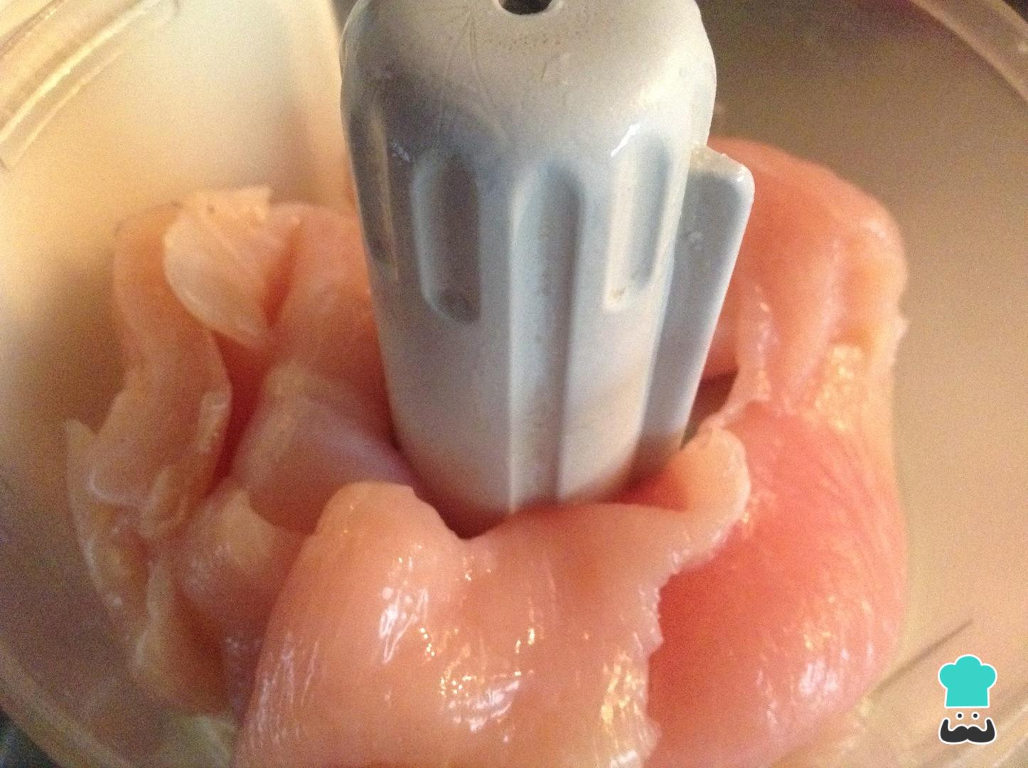 Lleva las pechugas de pollo al procesador de alimentos.