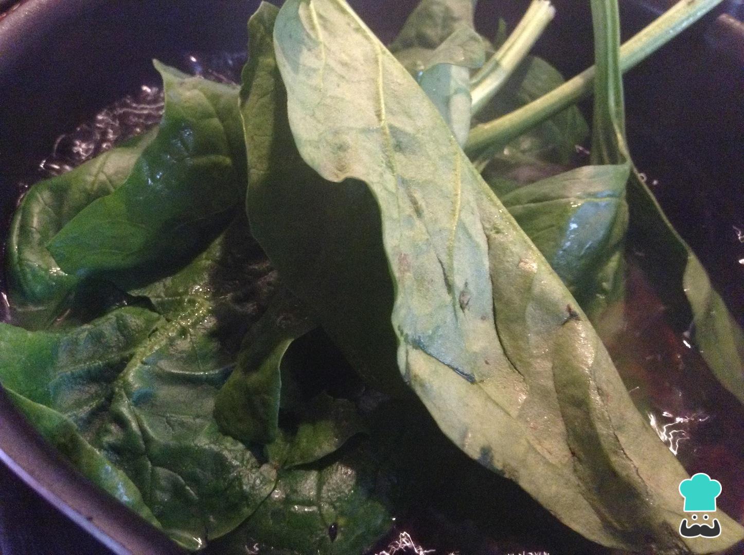 Lleva una olla honda a fuego medio con agua y, una vez alcance el punto de ebullición, agrega las hojas de espinacas y cocina durante un par de minutos.