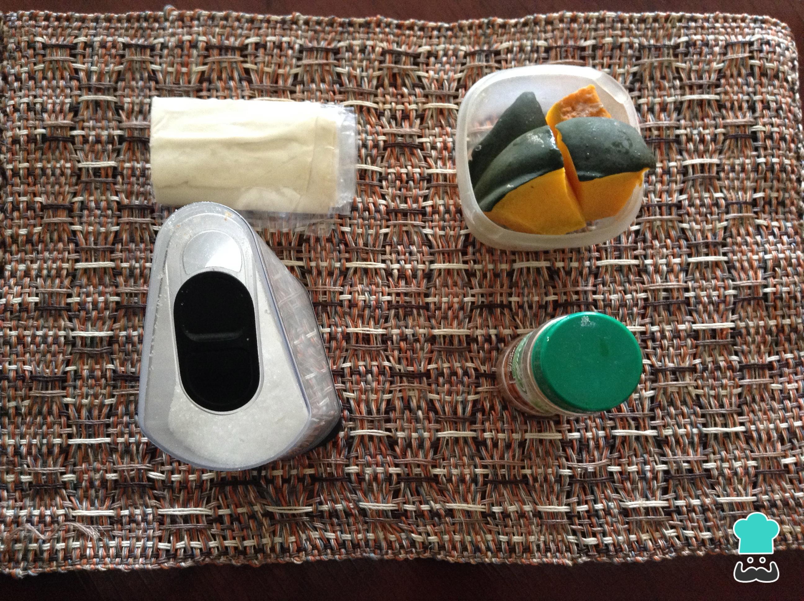 Prealistar los ingredientes para preparar los rollos de calabaza para Halloween.