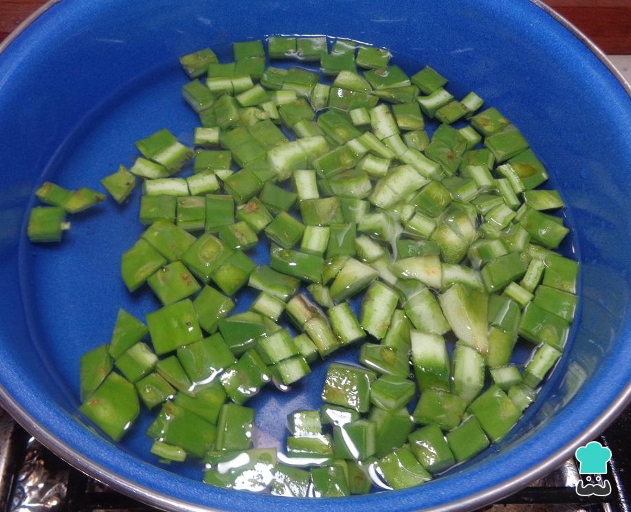 Truco: Agrega una pizca de bicarbonato de sodio para que los nopales no suelten mucha babita.