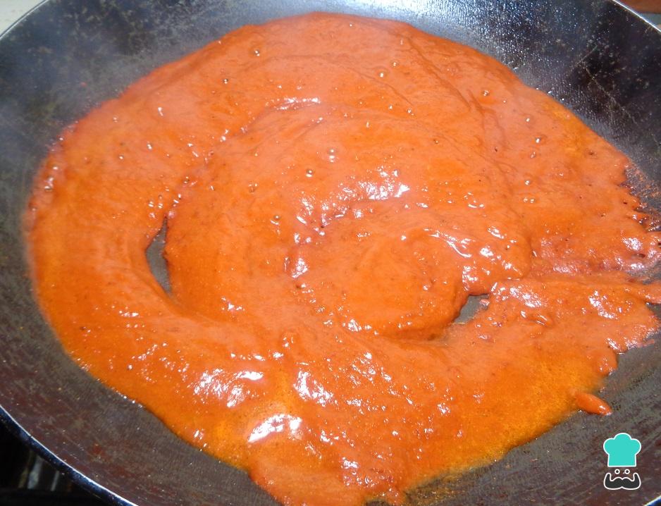 Calentamos el aceite en un sartén a fuego medio y vertemos la salsa, dejamos que se sazone de entre 5 a 8 minutos. Vamos agregando un poco del agua en la que se remojaron los camarones para sazonar la salsa de los romeritos con camarón.