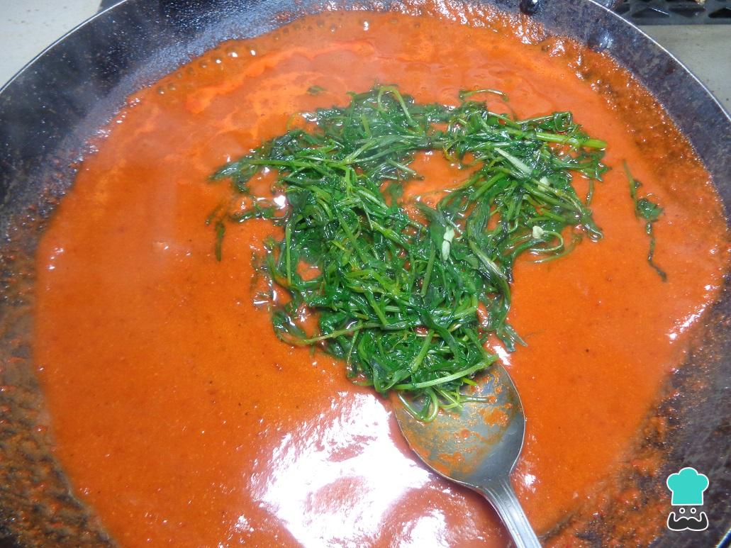 Pasado el tiempo de sazón, agregamos los romeritos ya cocidos.