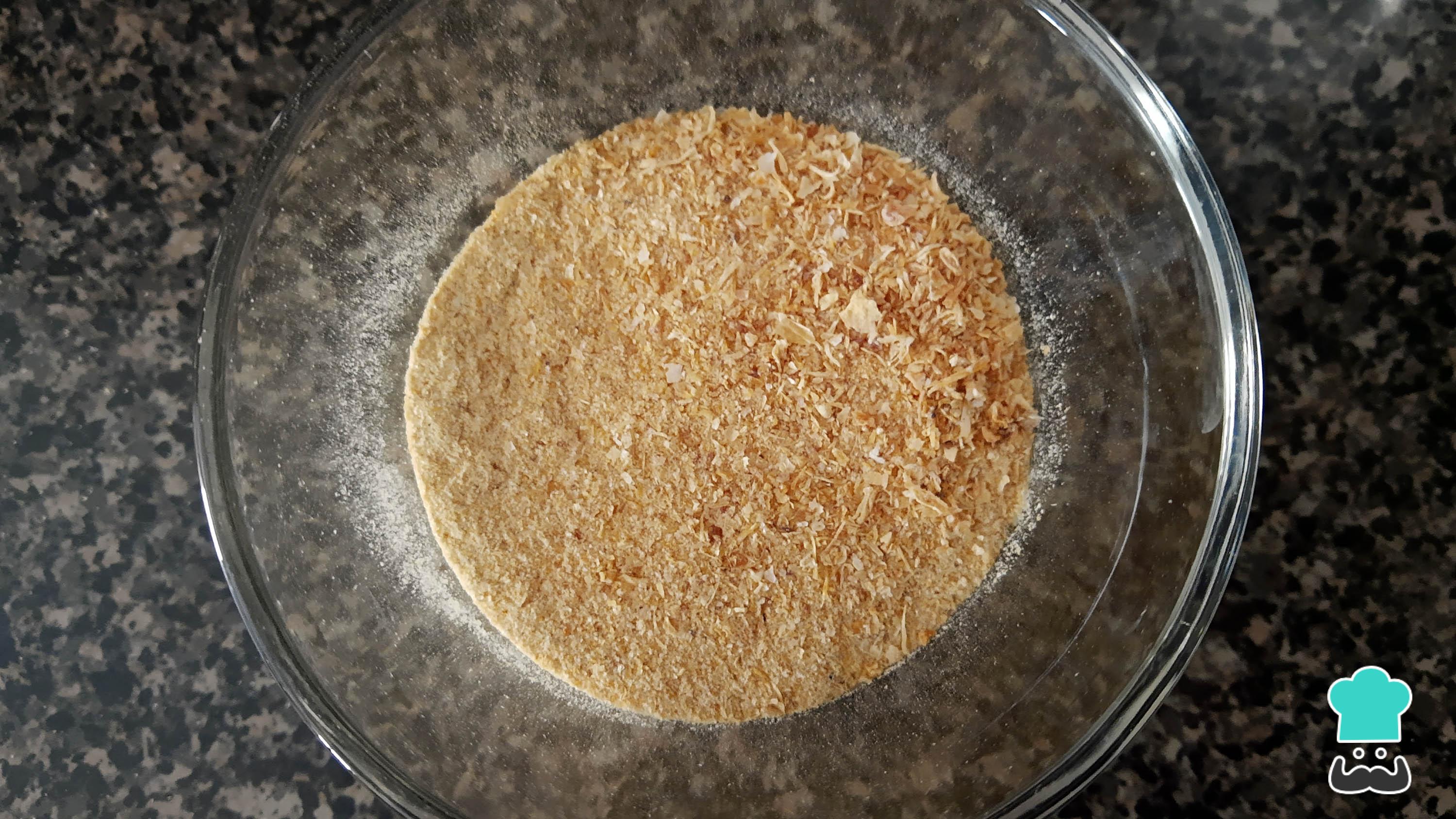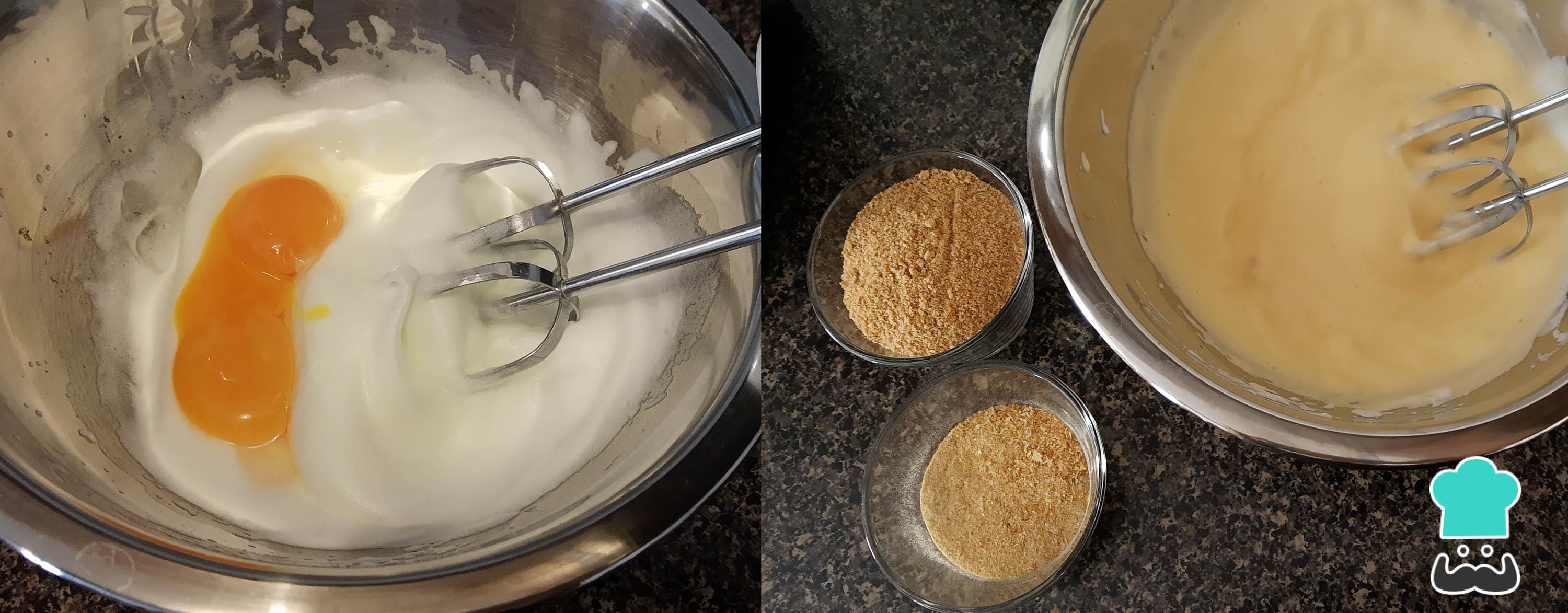 Monta las claras de huevo y cuando llegues a punto de nieve agrega las yemas y vuelve a batir. Después, añade la taza de pan molido y el camarón que pulverizaste y mezcla hasta obtener una pasta.