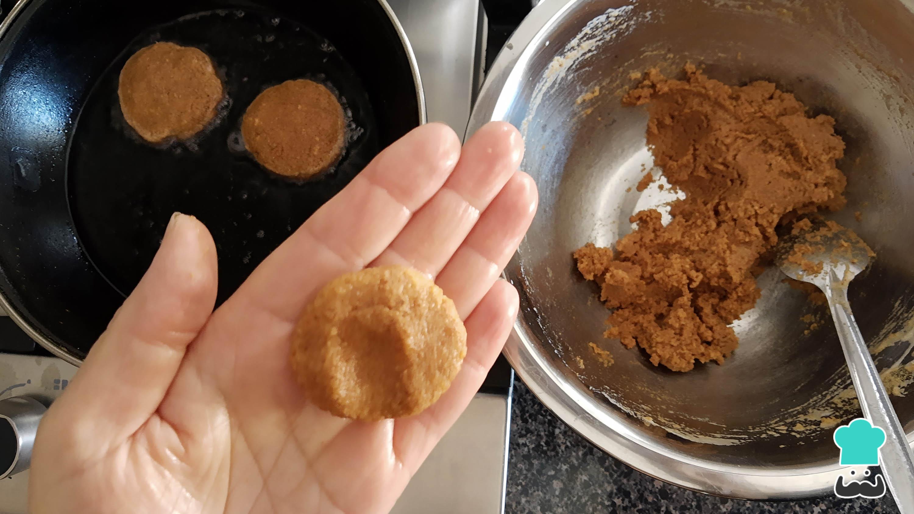 Calienta 3 cucharadas de aceite en una sartén, forma bolitas pequeñas y presiónalas para formar las tortitas. Una vez listas, fríelas por ambos lados hasta que estén ligeramente doradas.